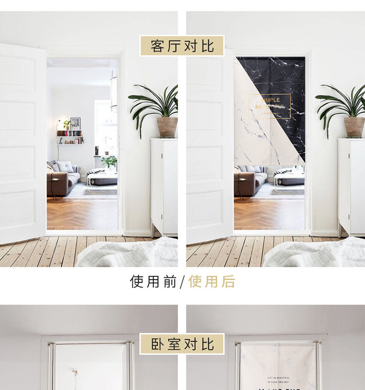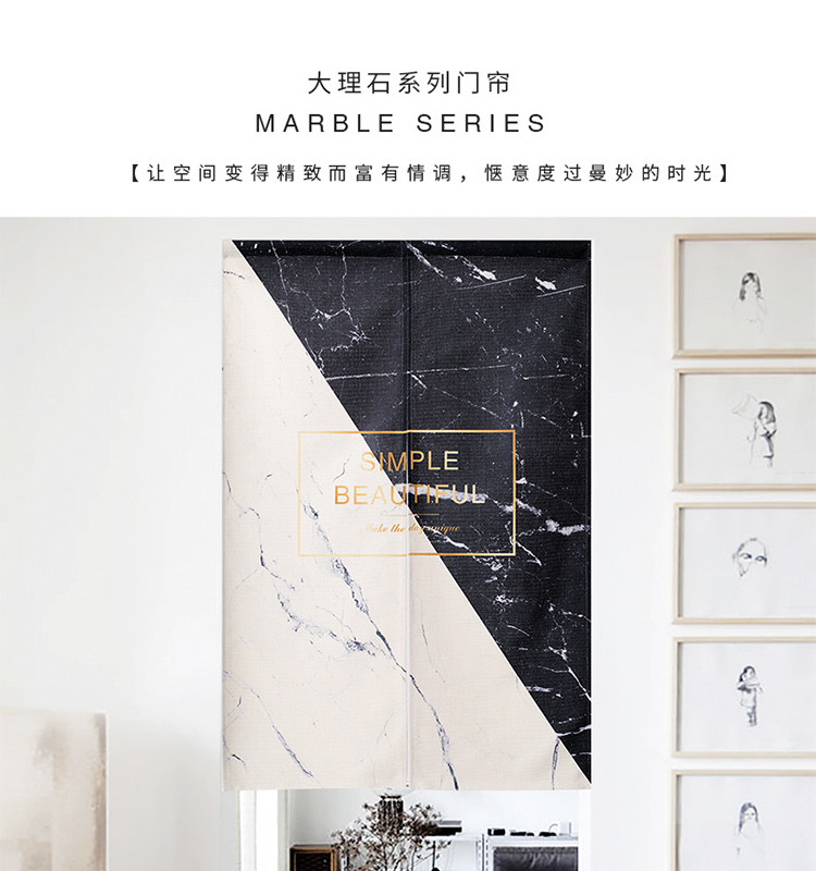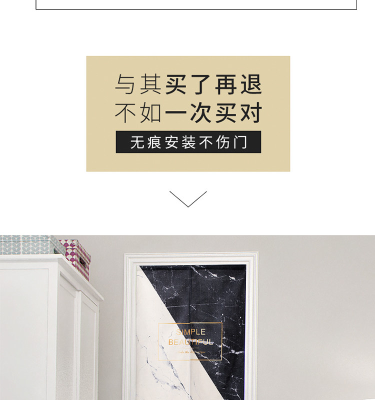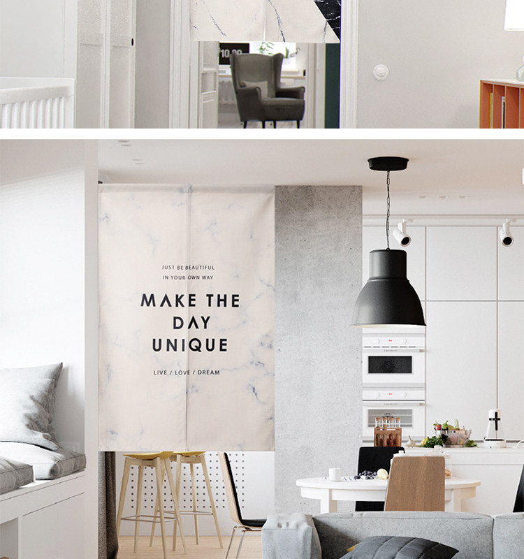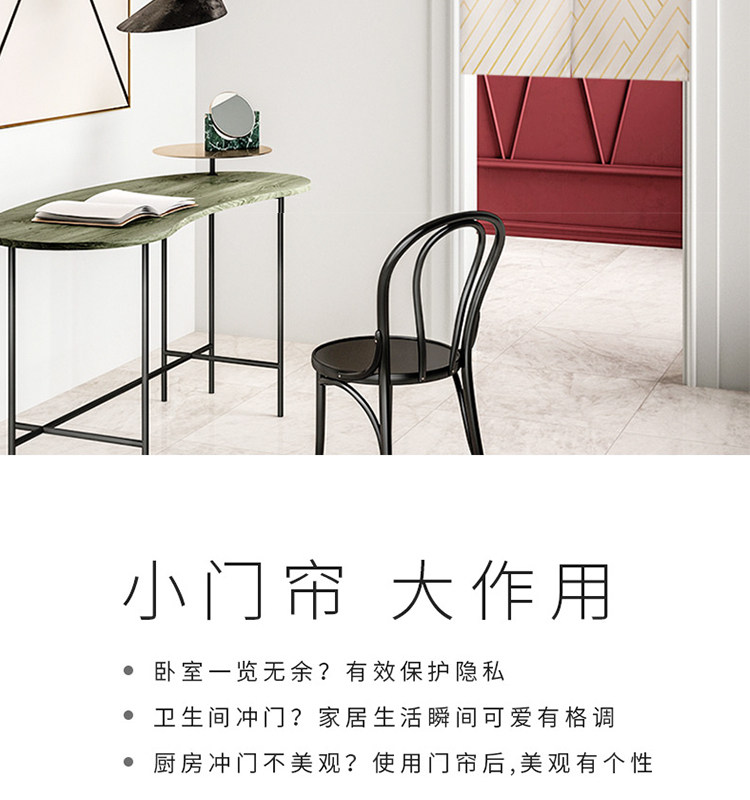 北欧大理石卧室隔断门帘家用餐厅个性厨房防油烟布艺半帘子免打孔
