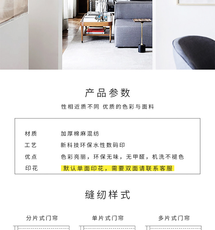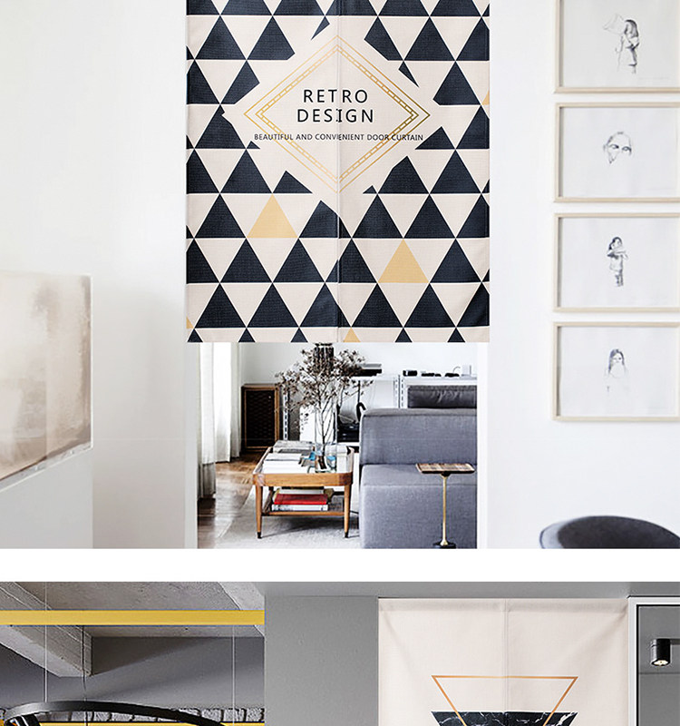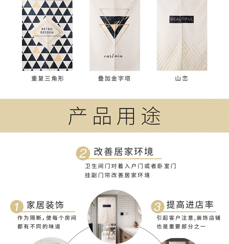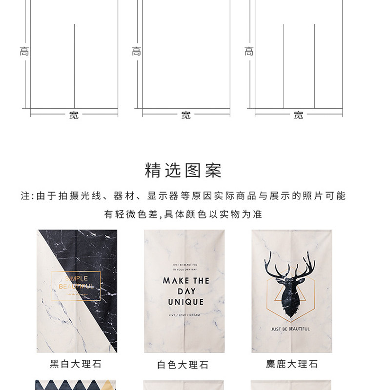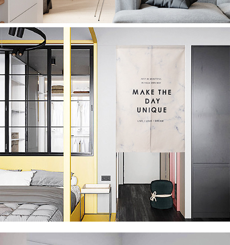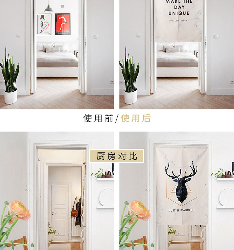 北欧大理石卧室隔断门帘家用餐厅个性厨房防油烟布艺半帘子免打孔
