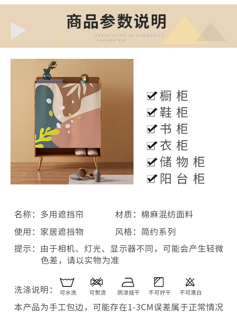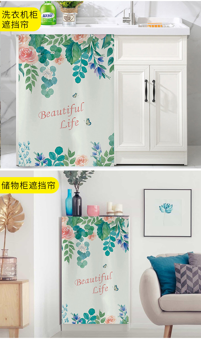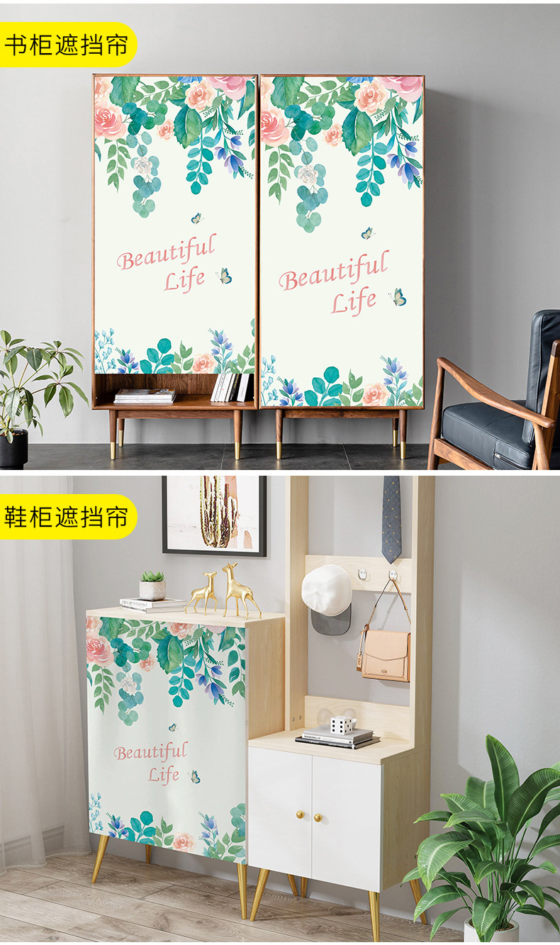 鞋柜遮挡帘橱柜门帘衣柜厨房防尘遮挡布魔术贴柜子杂物遮丑布帘子