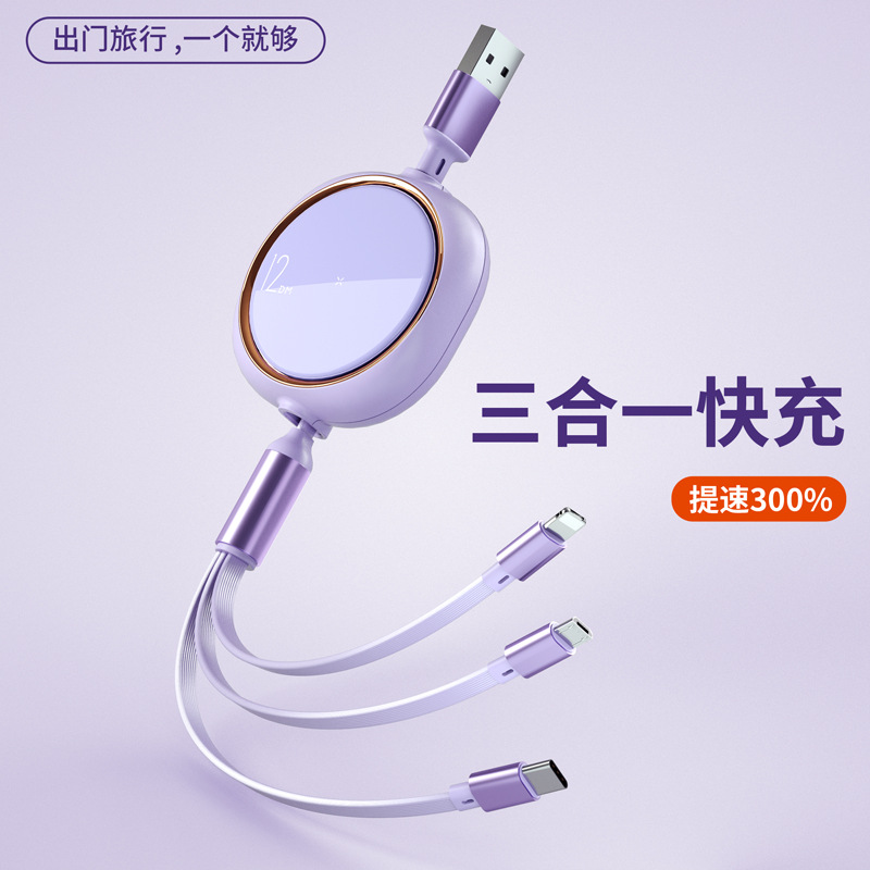66W超级快充数据线迪士尼联名一拖三充电线适用于苹果安卓Type-c
