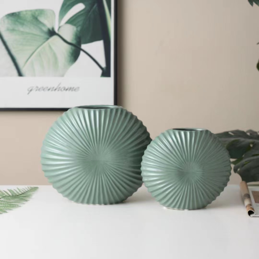 简约现代莫兰迪红蓝绿紫色陶瓷花瓶画眉家居装饰电视柜摆件二件套