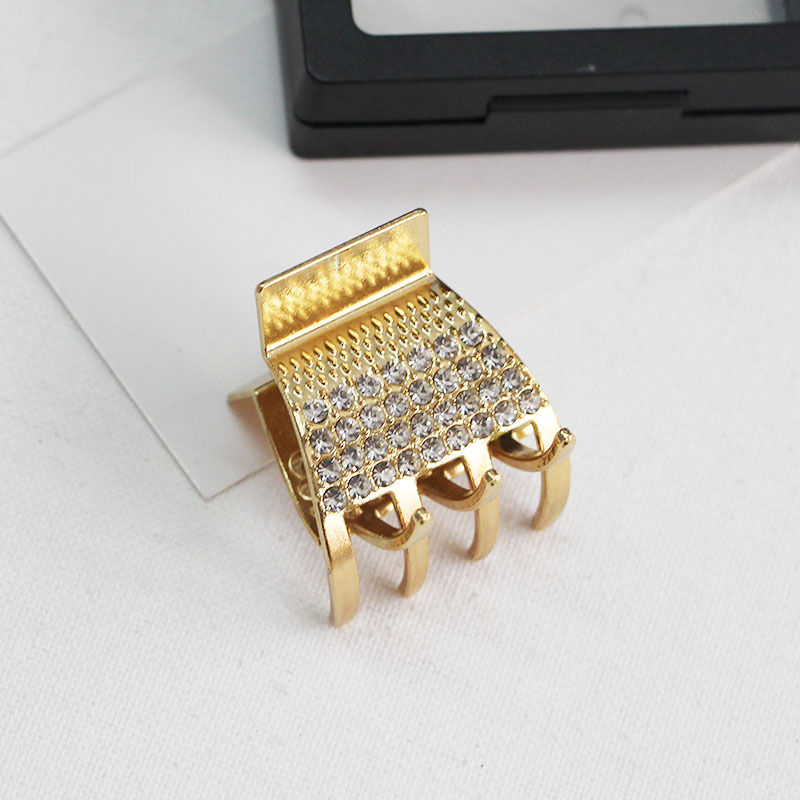 3.5CM合金钻石小抓夹金色简约发卡高档边夹发饰女