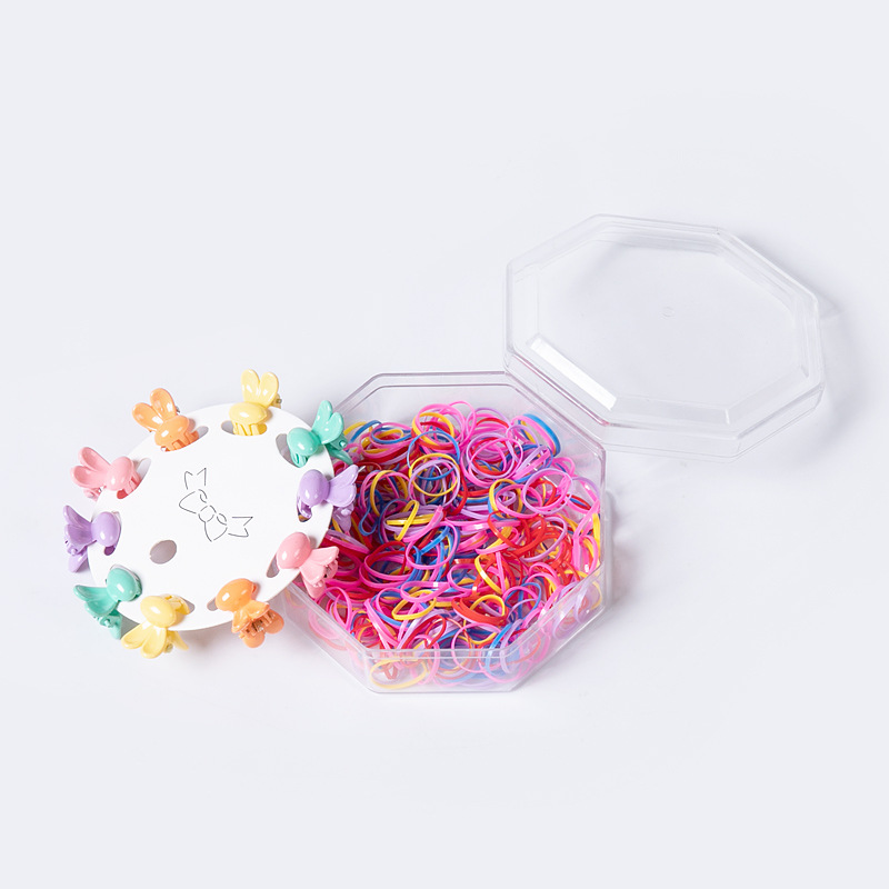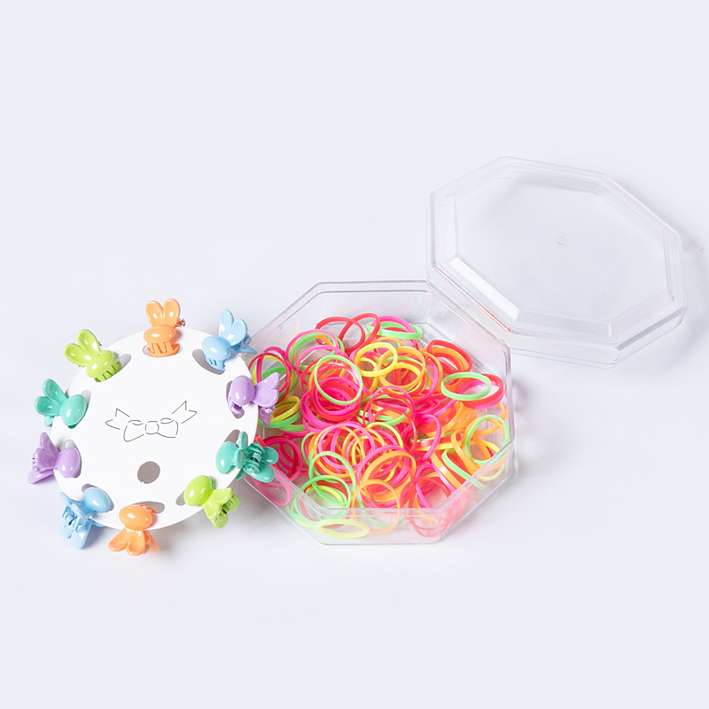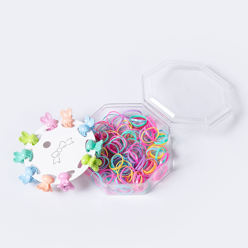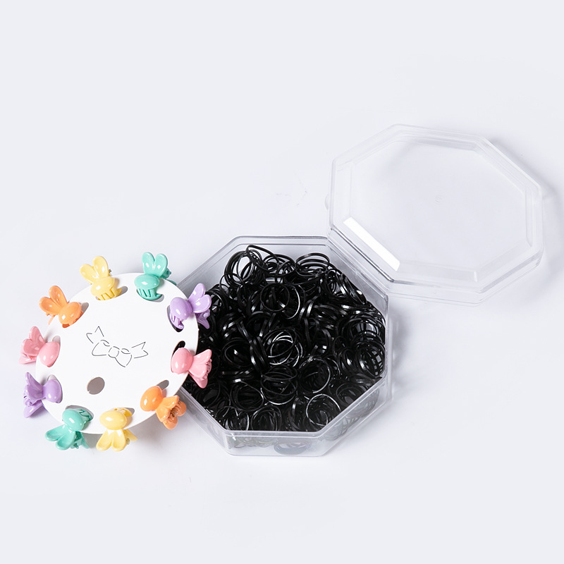 韩版网红新款八角盒发夹皮筋套装儿童一次性发圈强拉不断小圈抓夹