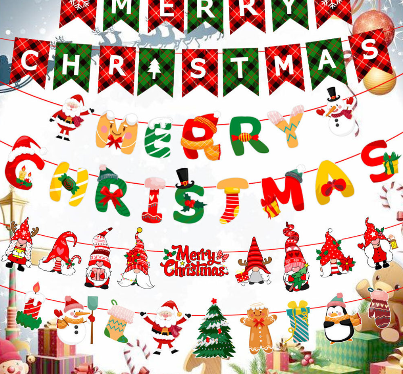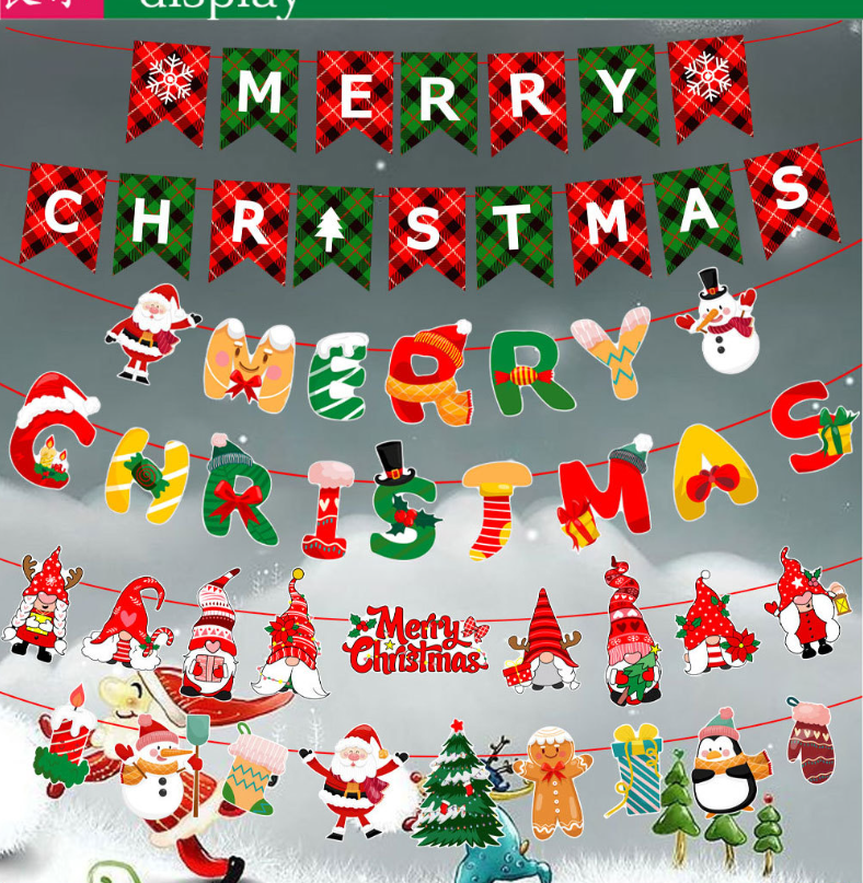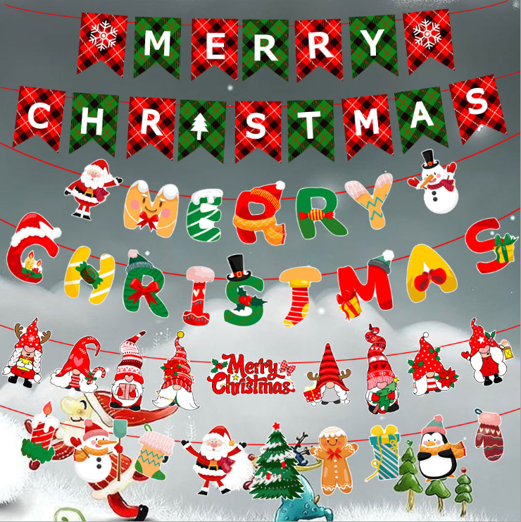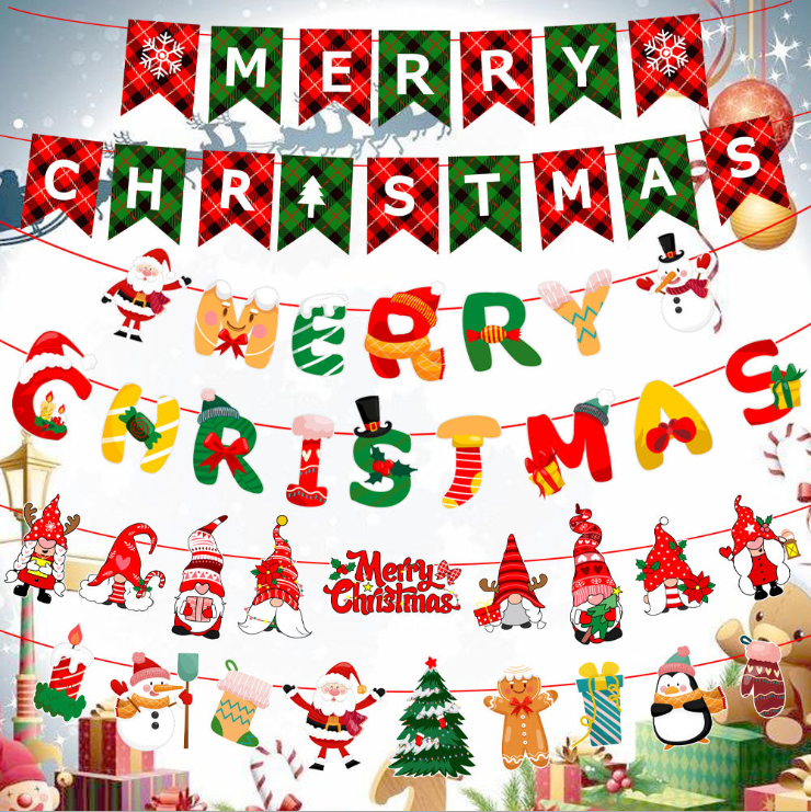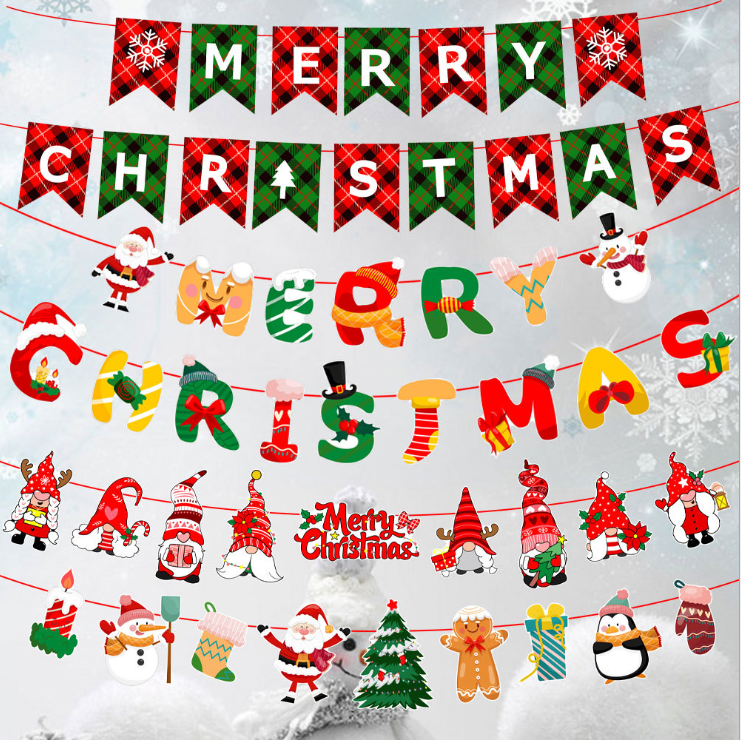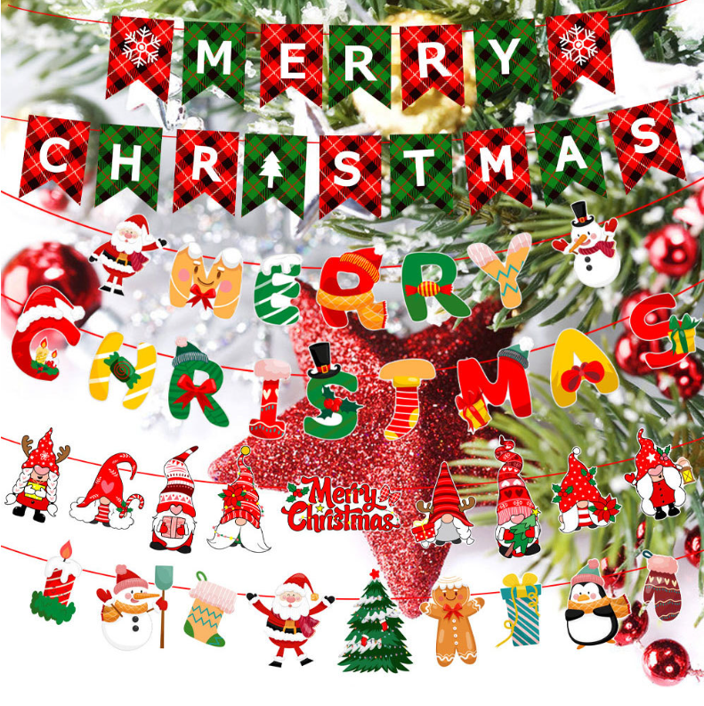 圣诞氛围装饰拉旗吊旗彩旗幼儿园卡通创意挂饰圣诞拉旗商场饰品