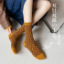 袜子双针双路中筒袜子女秋冬新款格子豹纹意大利复古ins堆堆袜女