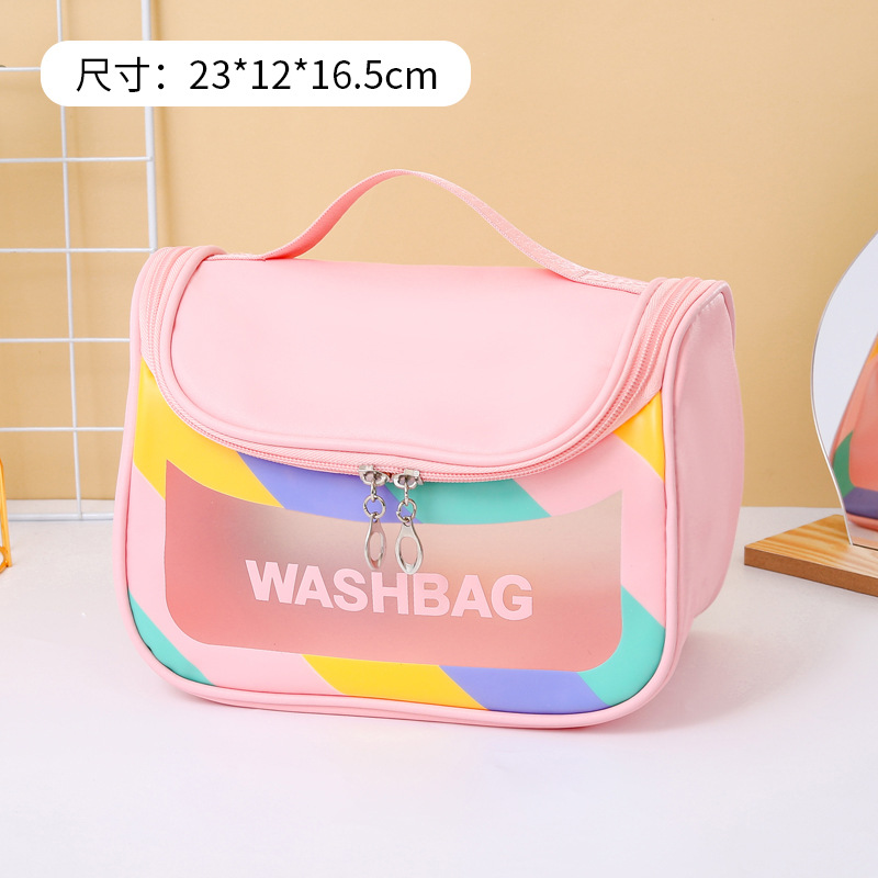 新款透明化妆品洗漱包手提pvc防水便携高颜值收纳包拼接妆袋批发