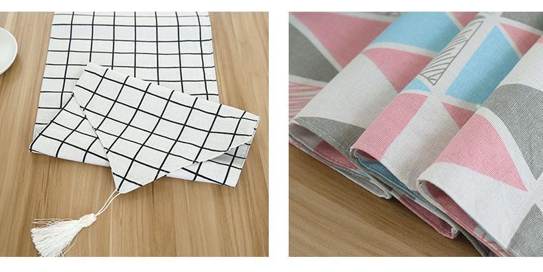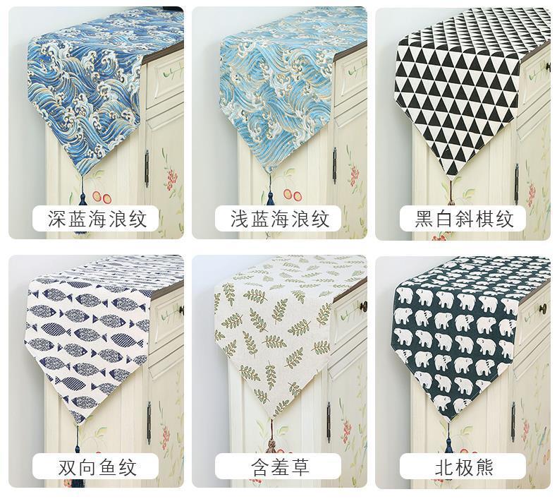 日式棉麻桌旗茶席茶几桌布少女心电视柜盖巾床旗尾巾