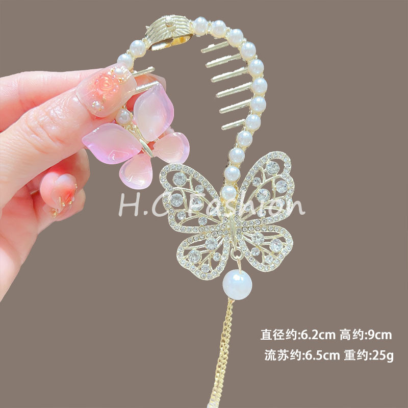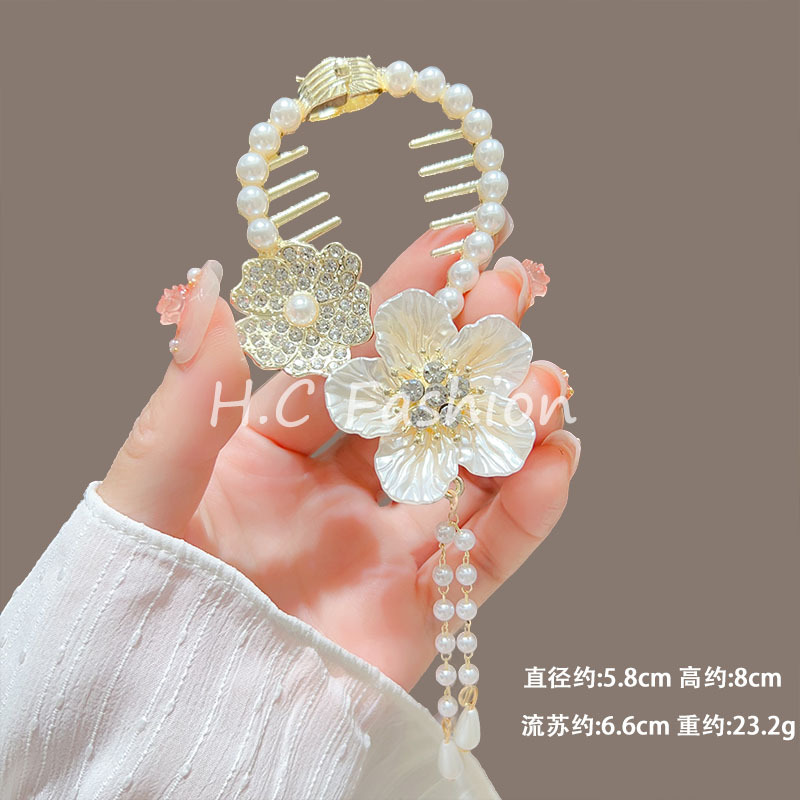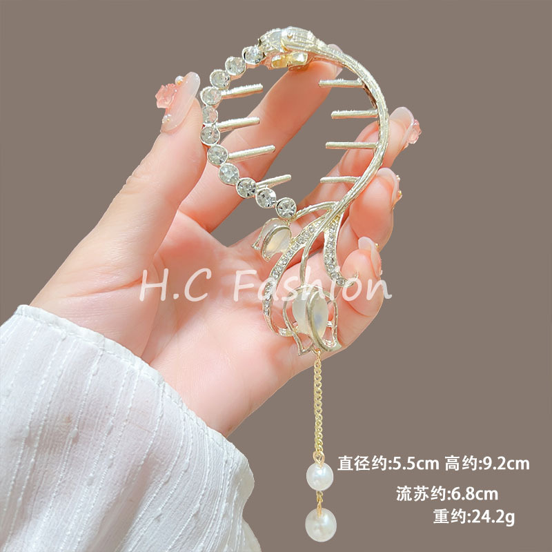 流苏发夹丸子头固定抓夹女高级感发扣气质半扎盘发发抓