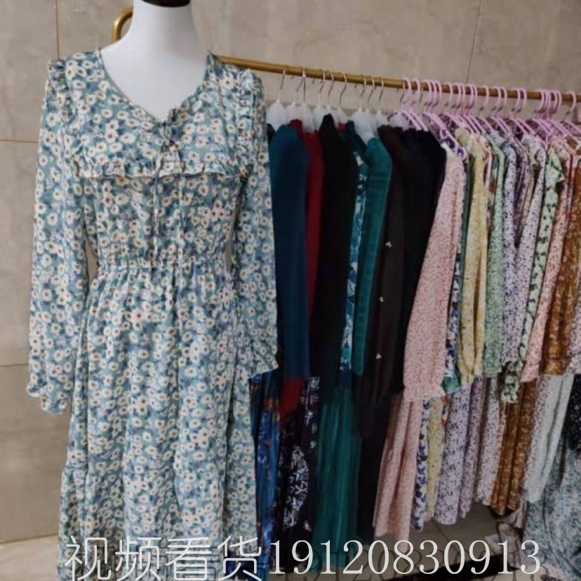 蕾丝娃娃领长袖雪纺碎花收腰连衣裙春秋新款设计感小众法式长裙