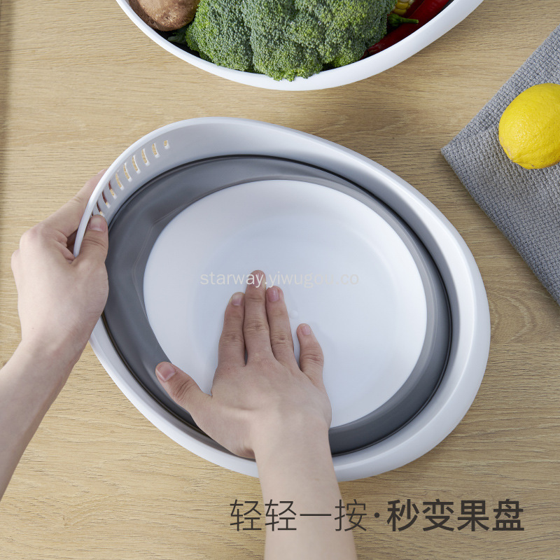 简约时尚厨房可挂式折叠水果盆 洗菜篮 折叠沥水盆折叠淘米盆
