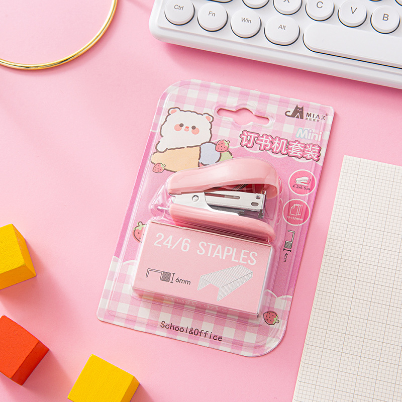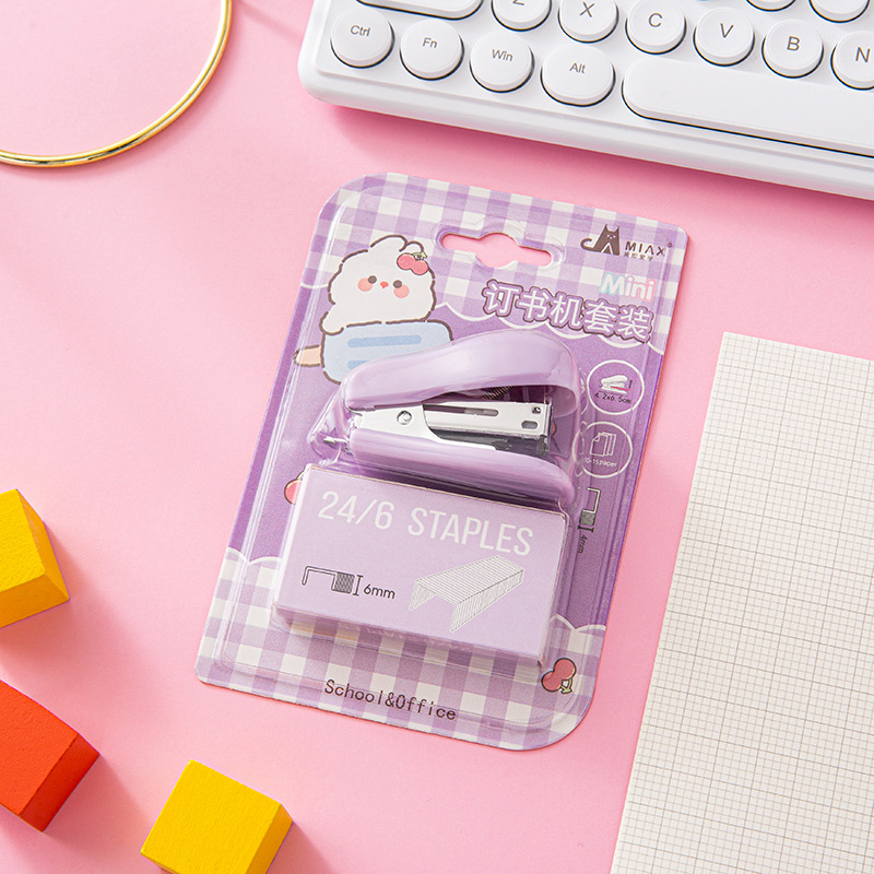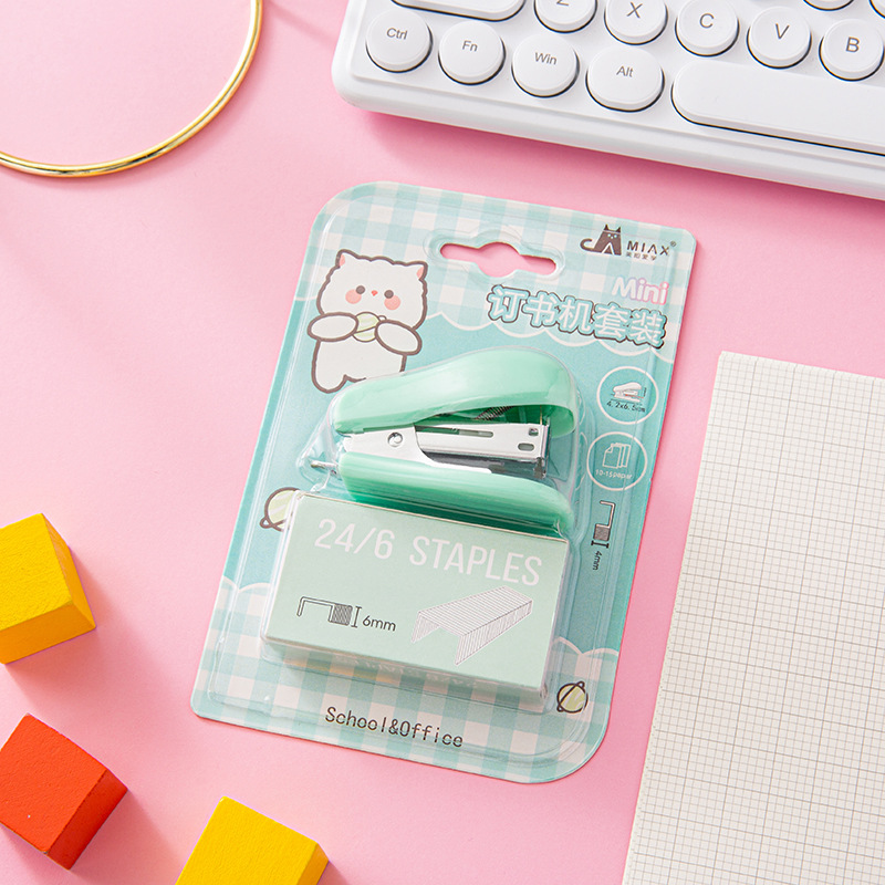 马卡龙色迷你订书机套装小型12号订书器订书针组合办公便携装订机