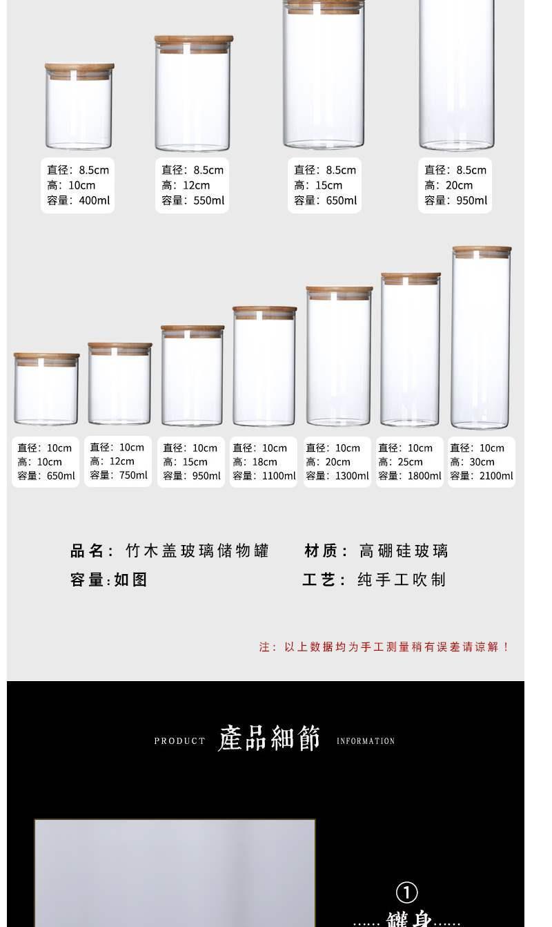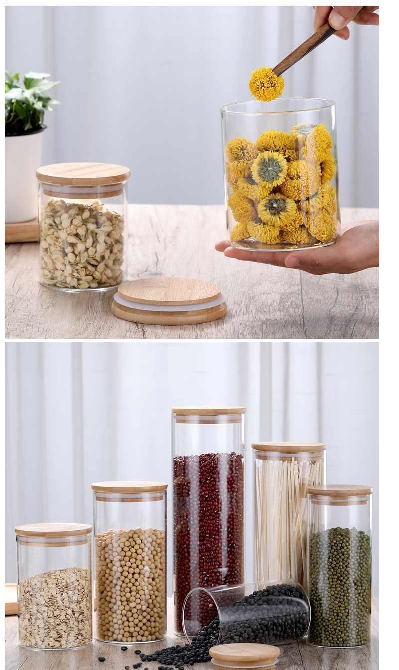 家用厨房带盖透明玻璃密封罐茶叶罐玻璃罐杂粮储物罐食物罐