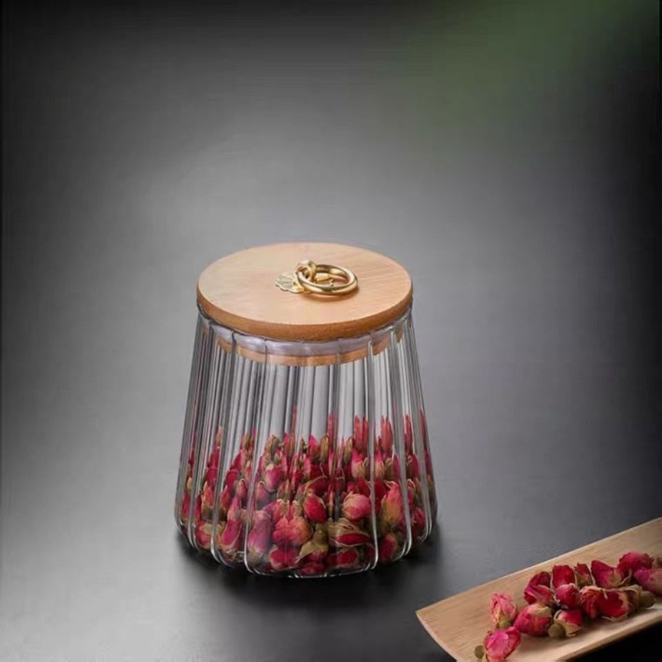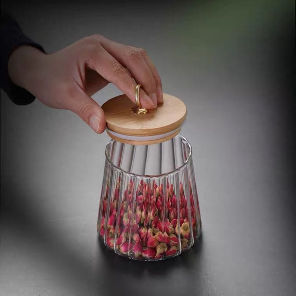 家用高档透明玻璃高硼硅密封罐茶叶零食糖果竹盖罐子