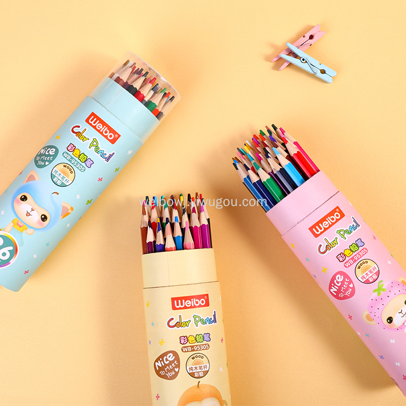 桶装彩色铅笔学生美术绘画用36色专用幼儿园彩色铅笔炜搏厂家直销