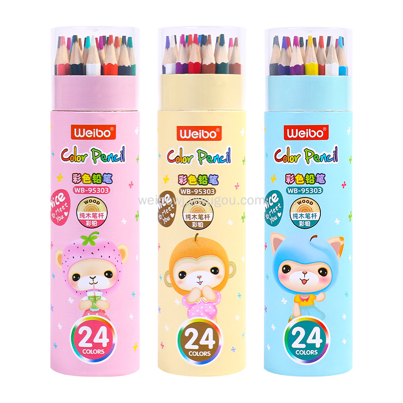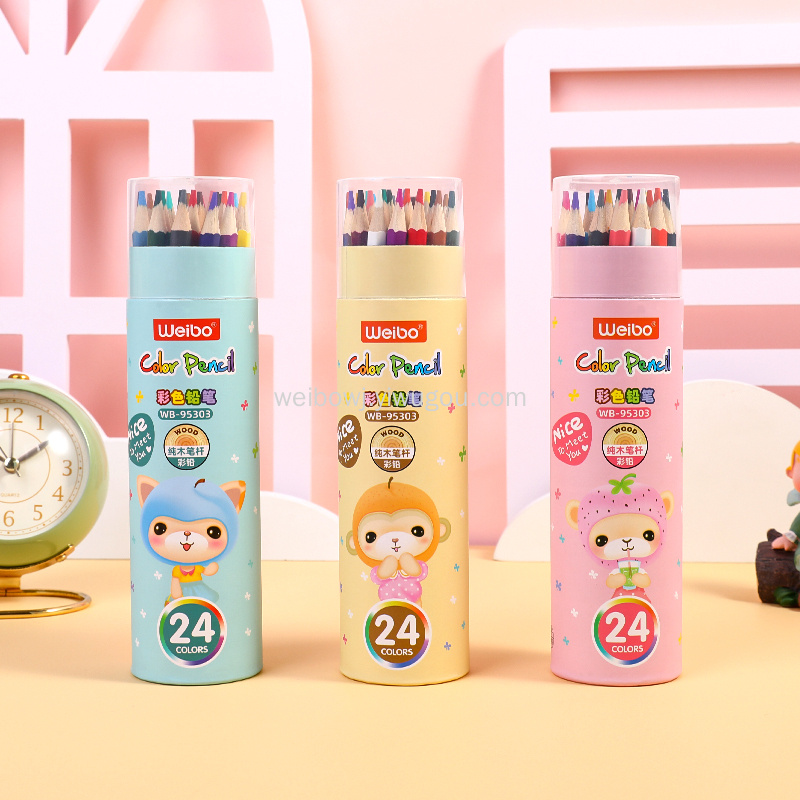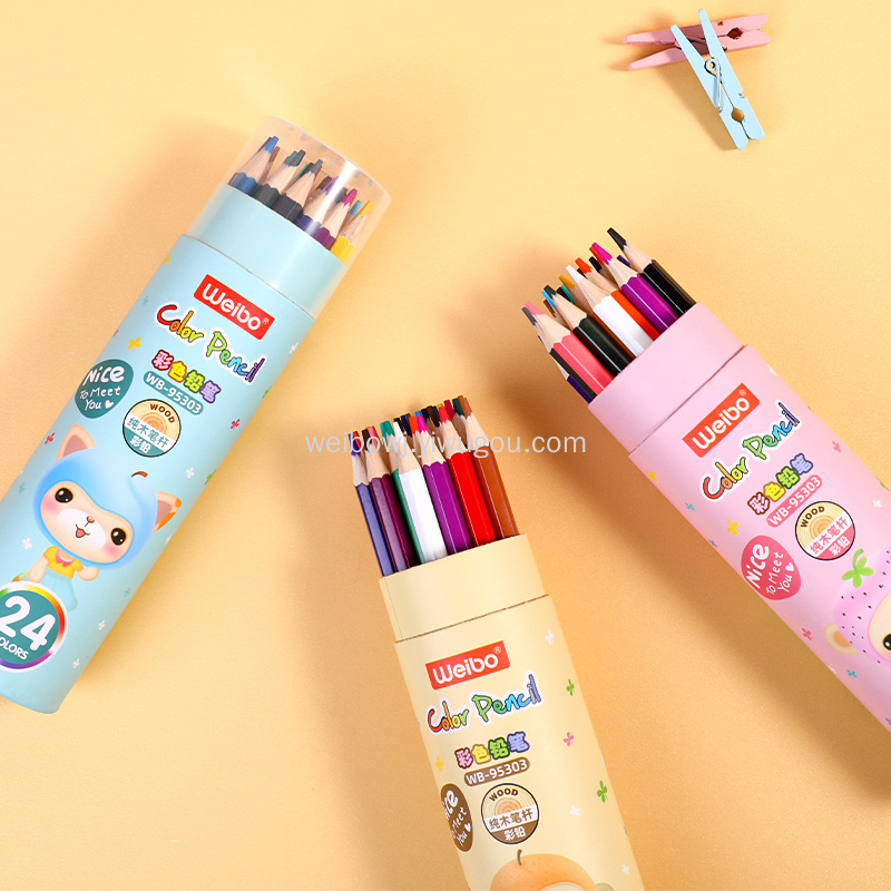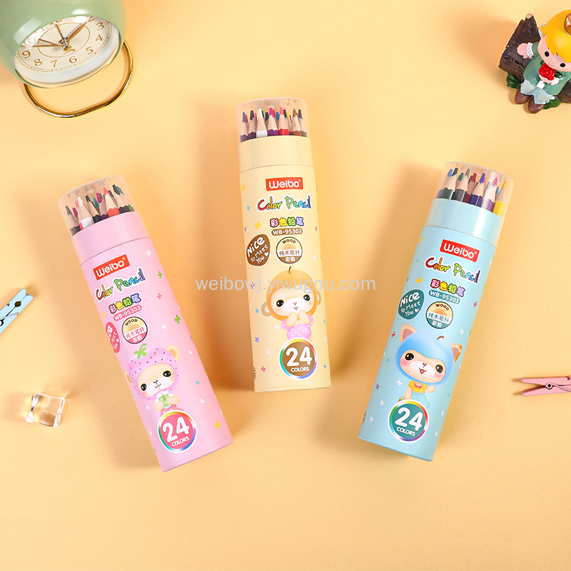桶装彩色铅笔学生美术绘画用24色专用幼儿园彩色铅笔炜搏厂家直销