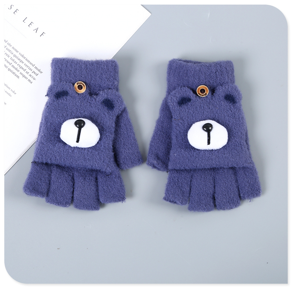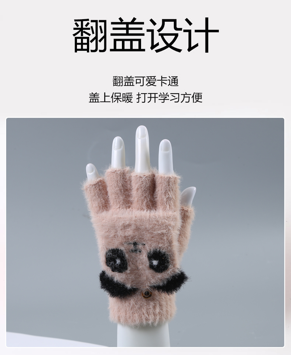 产品名称:彩色儿童卡通半指翻盖手套 冬日加绒保暖毛绒手套 男女生写字手套产品颜色:如图(多色可选)