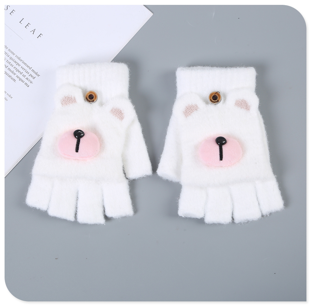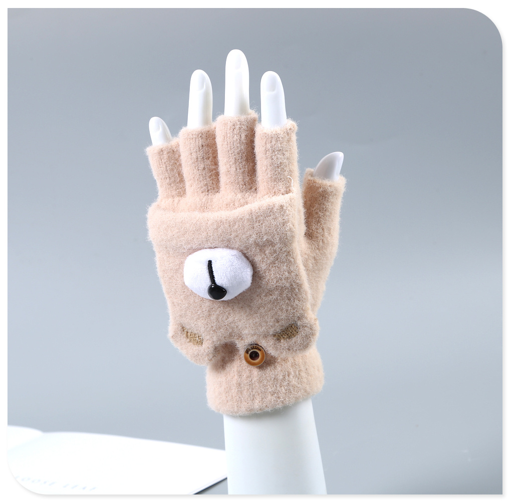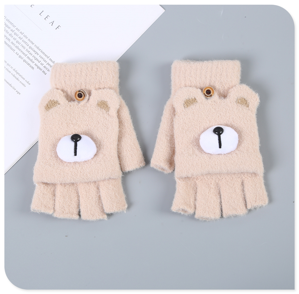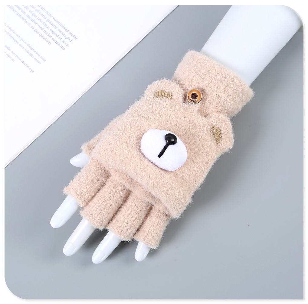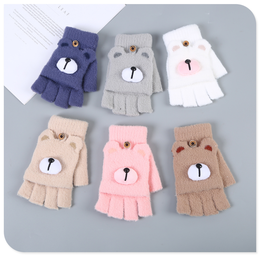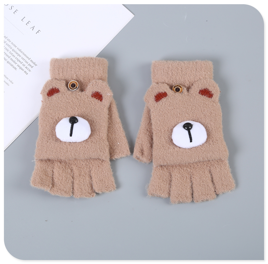 2022新款半指翻盖手套男女学生秋冬可爱小熊加绒保暖毛绒写字打字