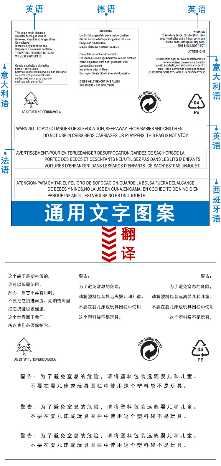 现货警告语cpe磨砂拉链袋跨境电商服装包装袋透明塑料密封自封袋
