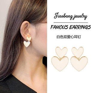 黑色水钻爱心耳环女简约耳钉2022新款潮韩国气质网红耳坠饰品