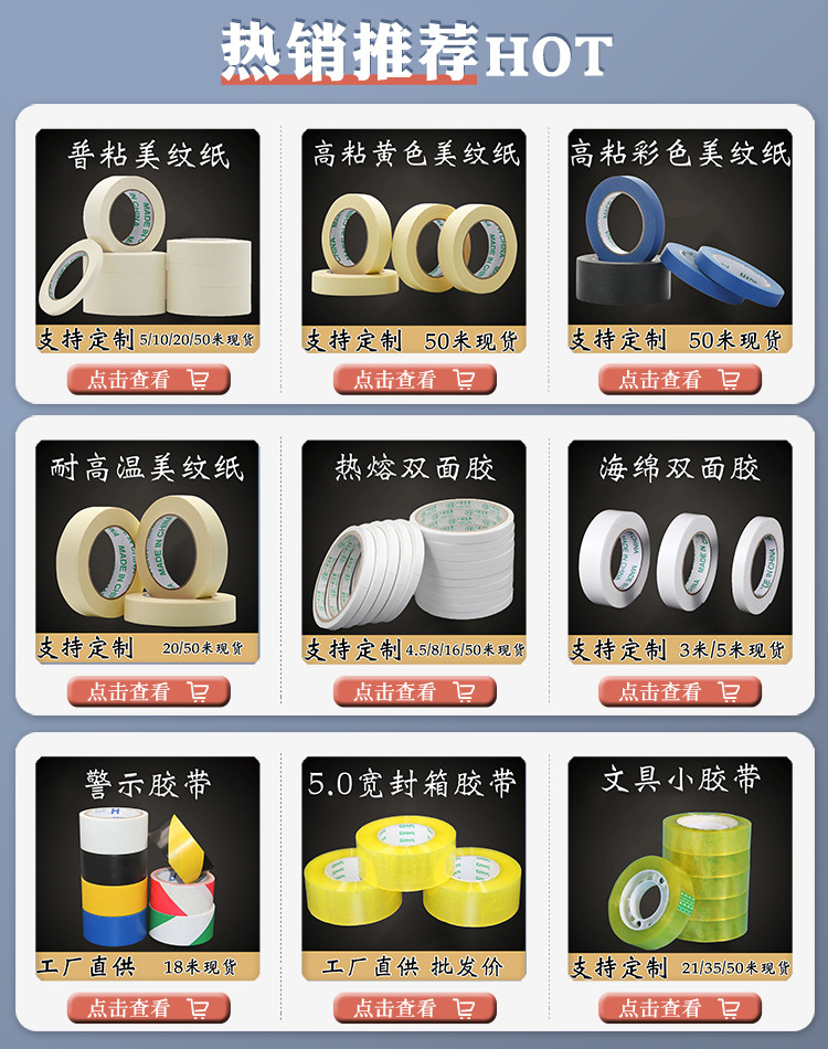 | [medium adhesive] 50mm wide 50 m long 36 rolls/box(【中粘】50毫米宽50米长36卷/箱) | USD $1.1 | 99002 roll available |