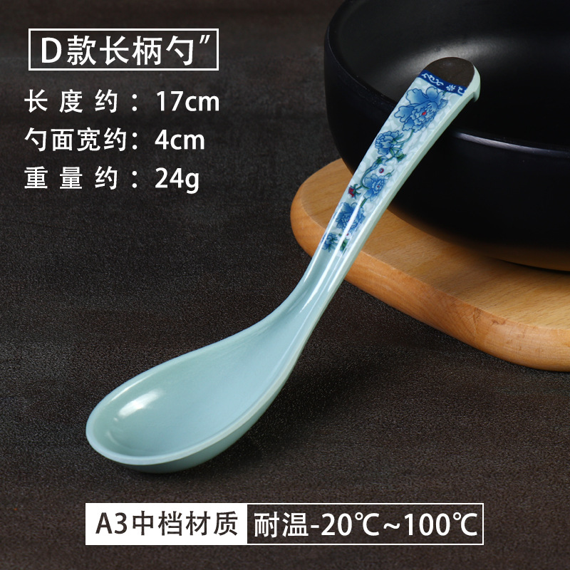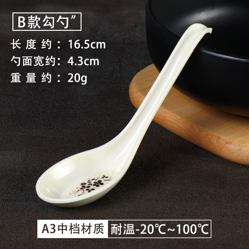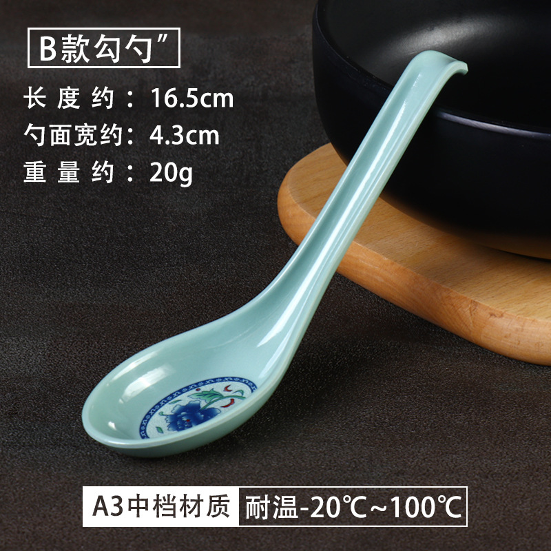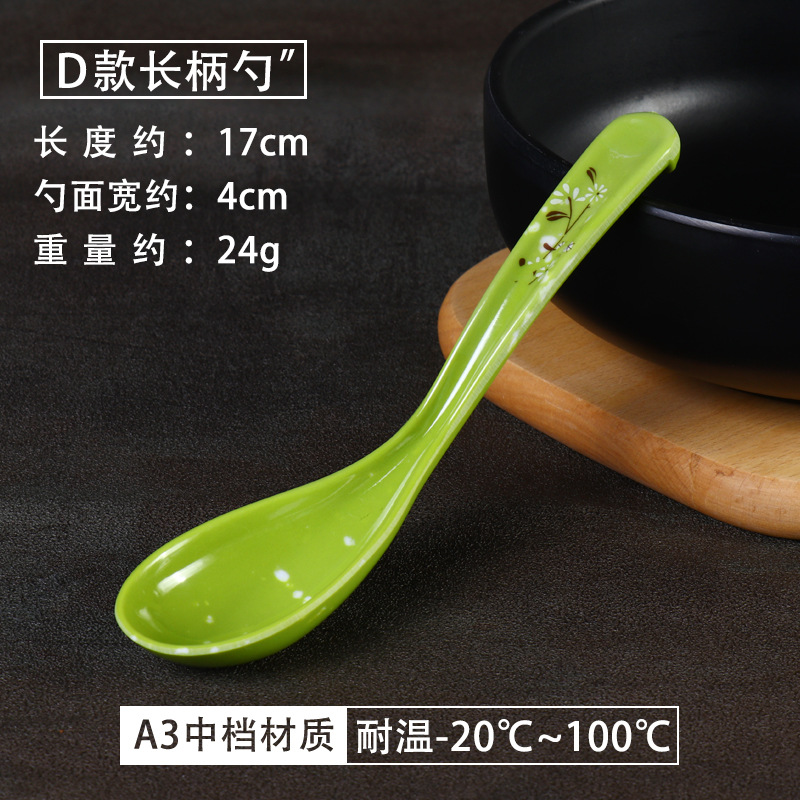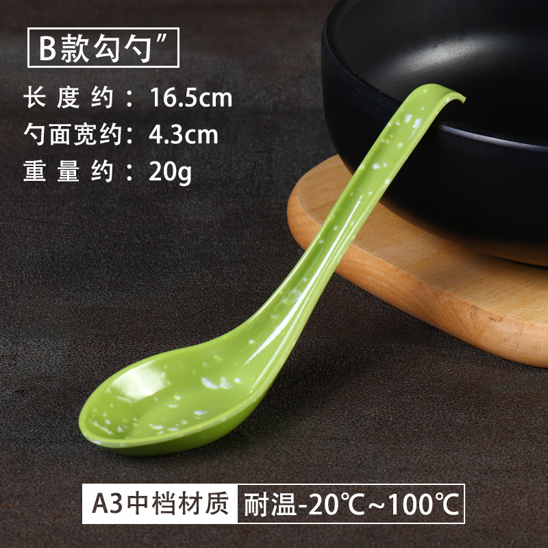 彩色密胺勺子塑料仿瓷带勾勺拉面汤勺汤匙调羹勺饭店商用长柄勺