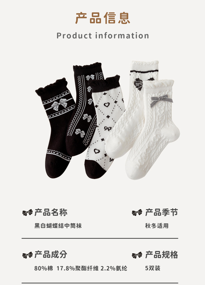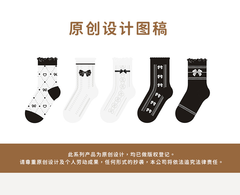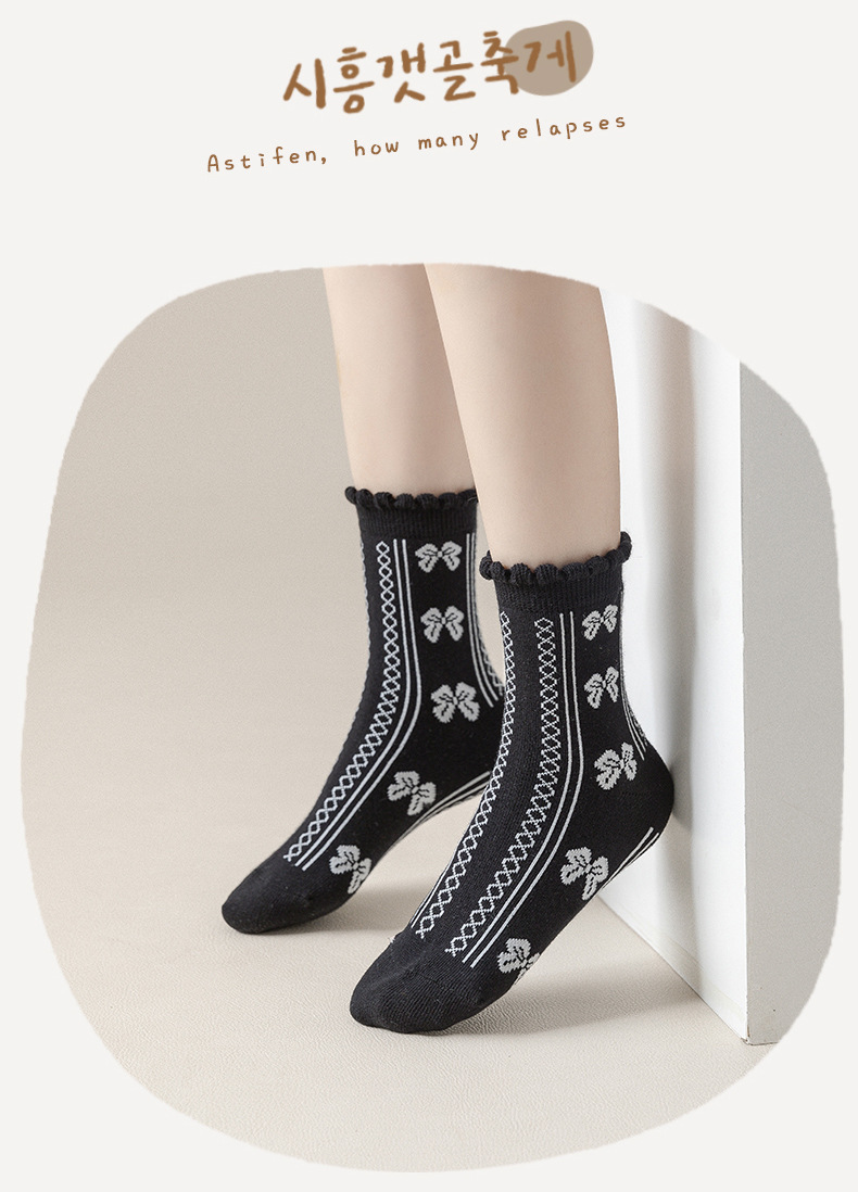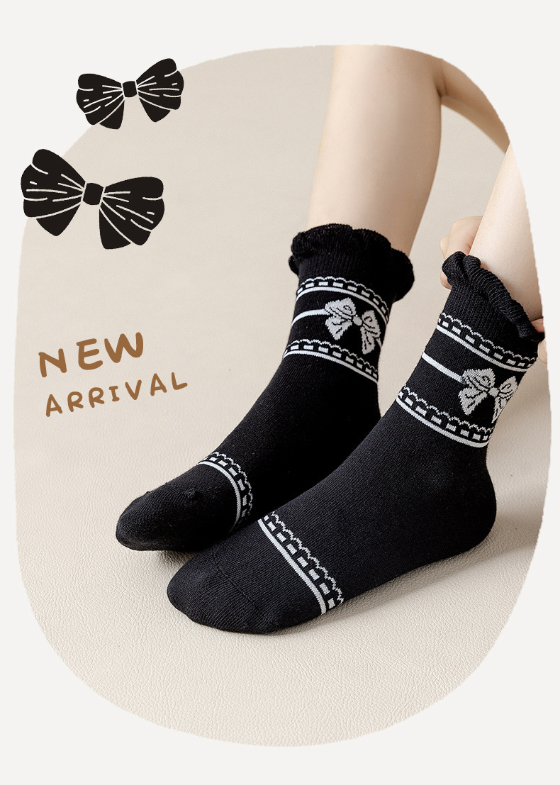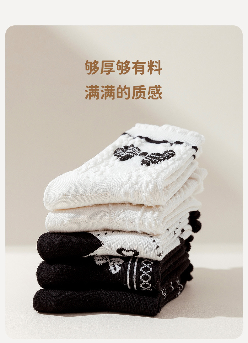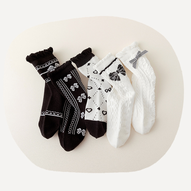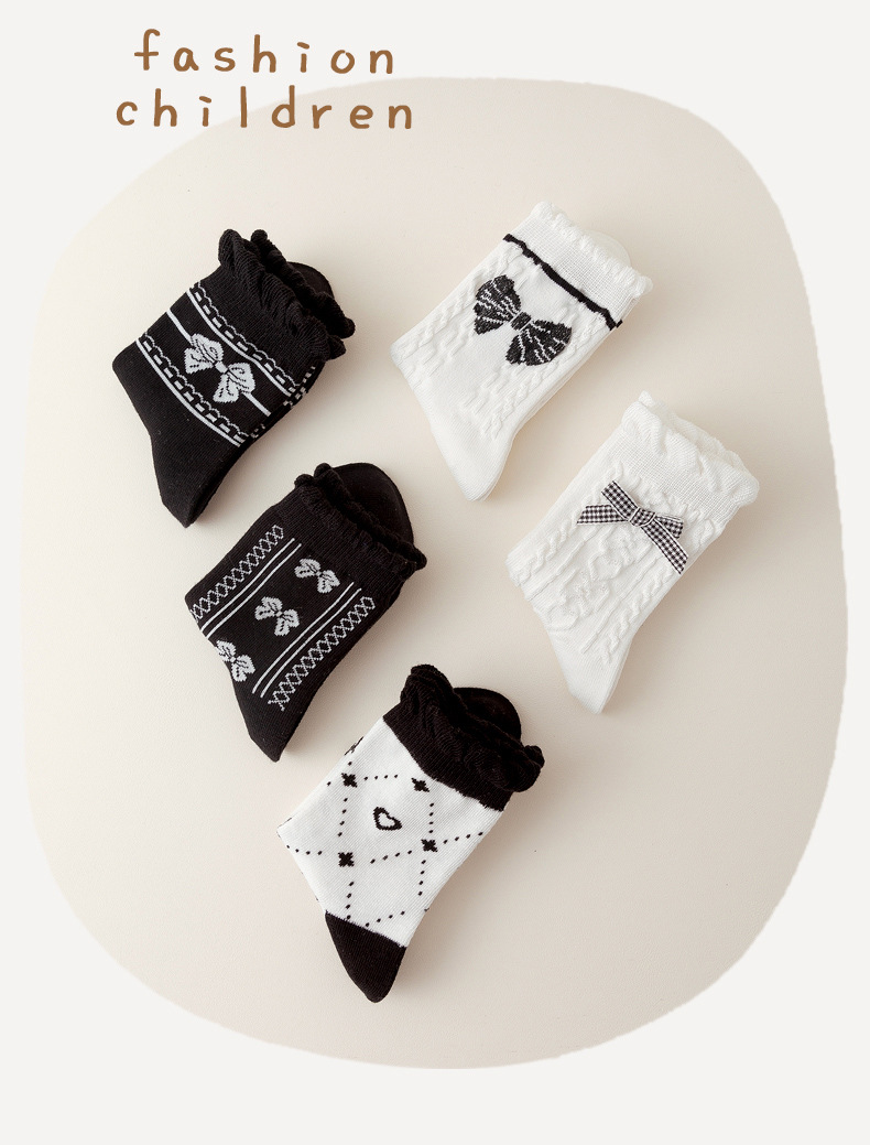 22款秋冬童袜黑白爱心女童袜花边蝴蝶结棉袜洛丽塔风女童袜子批发