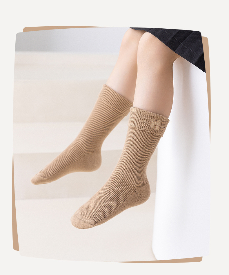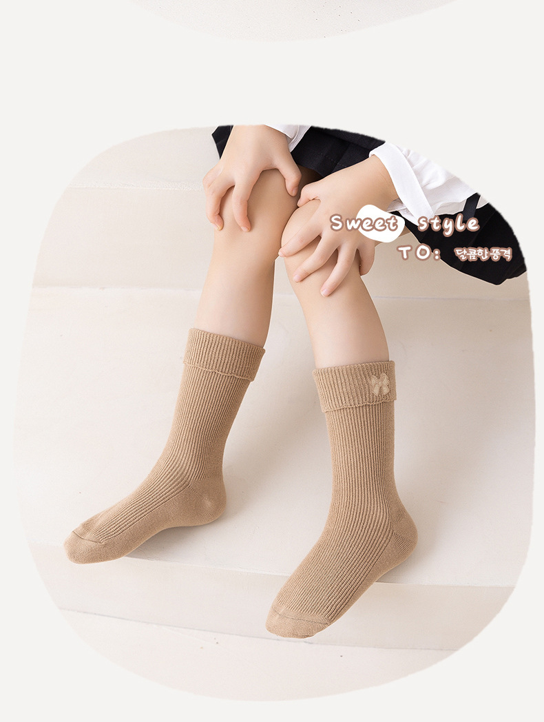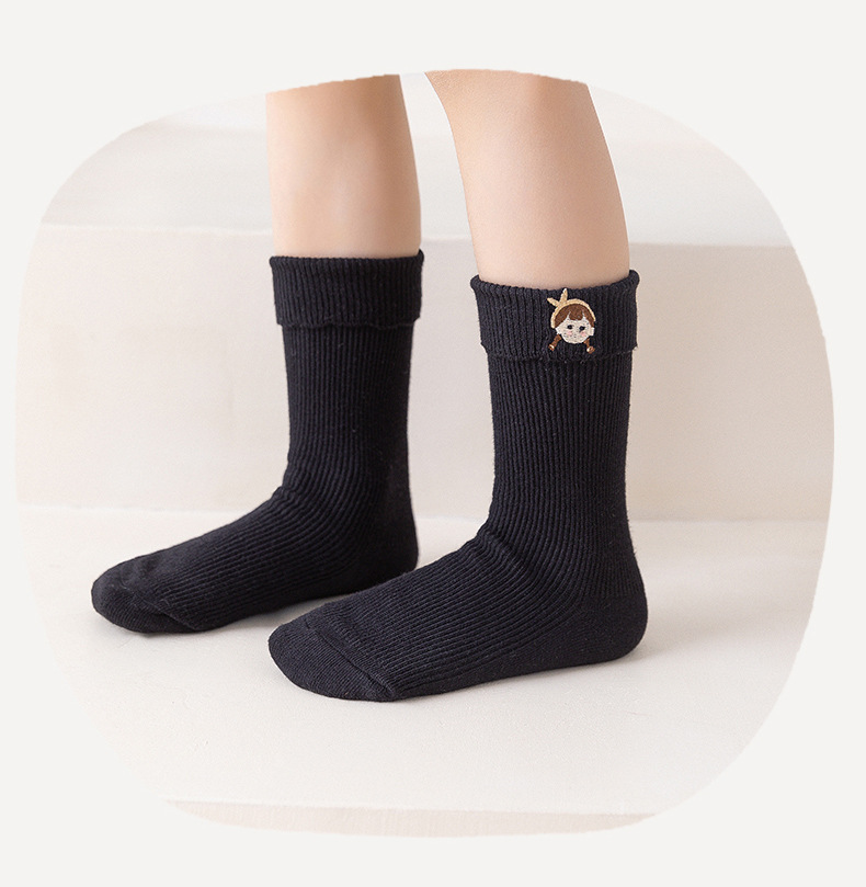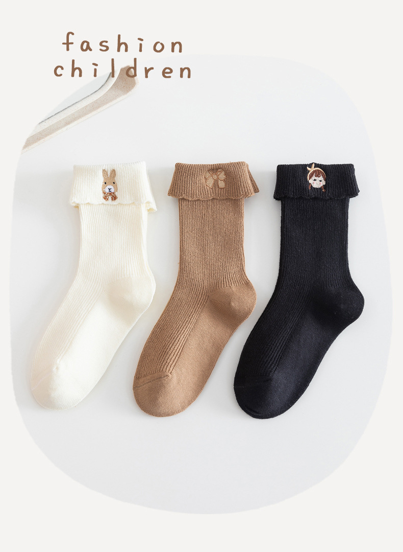 2022秋冬新款儿童袜子卡通蝴蝶结刺绣中筒袜子卷边竖条袜子批发