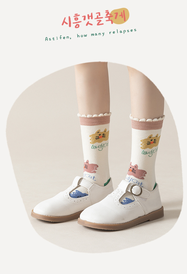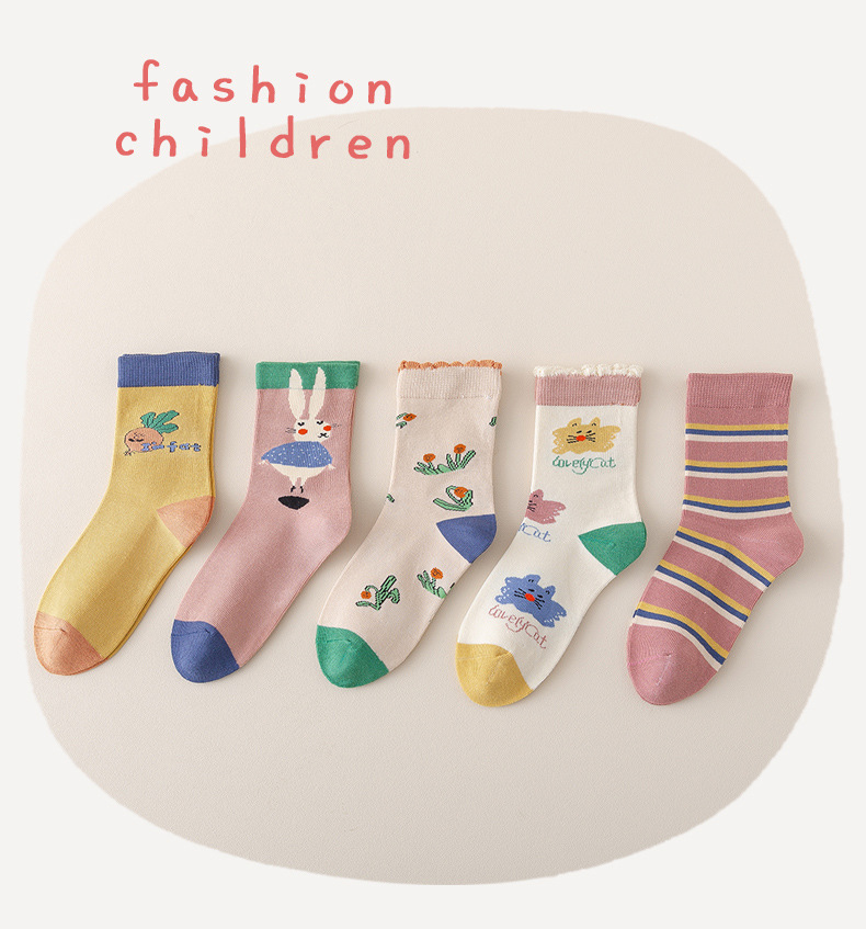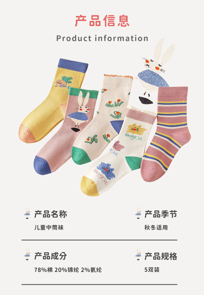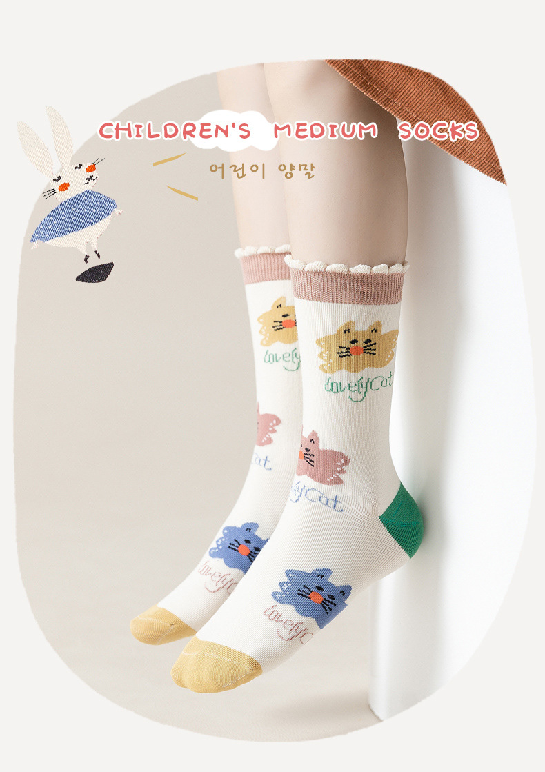 2022新款儿童子春秋男童女童棉袜卡通秋冬中筒袜涂鸦花边童袜子
