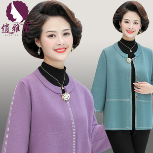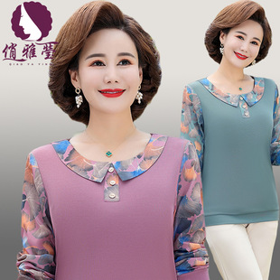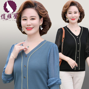 2022春季新款中老年女装内搭长袖V领T恤时尚洋气黑色妈妈装打底衫