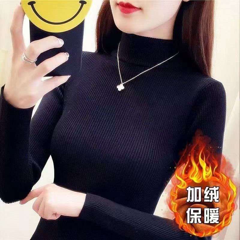 加绒加厚秋冬季新款毛衣女保暖百搭长袖针织衫修身打底衫地摊货源