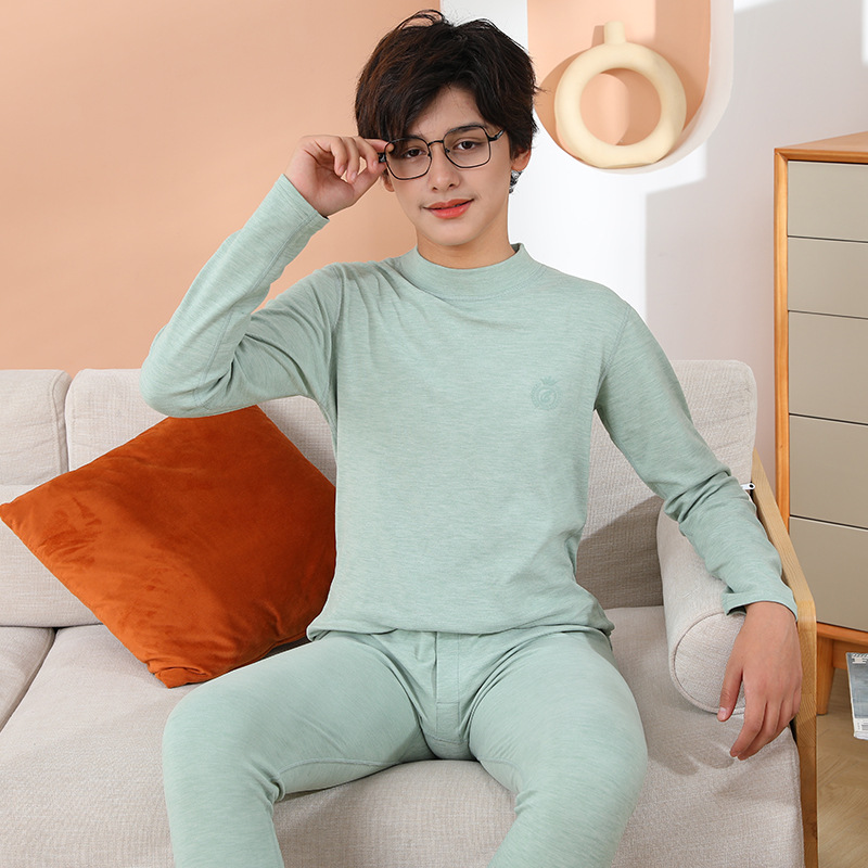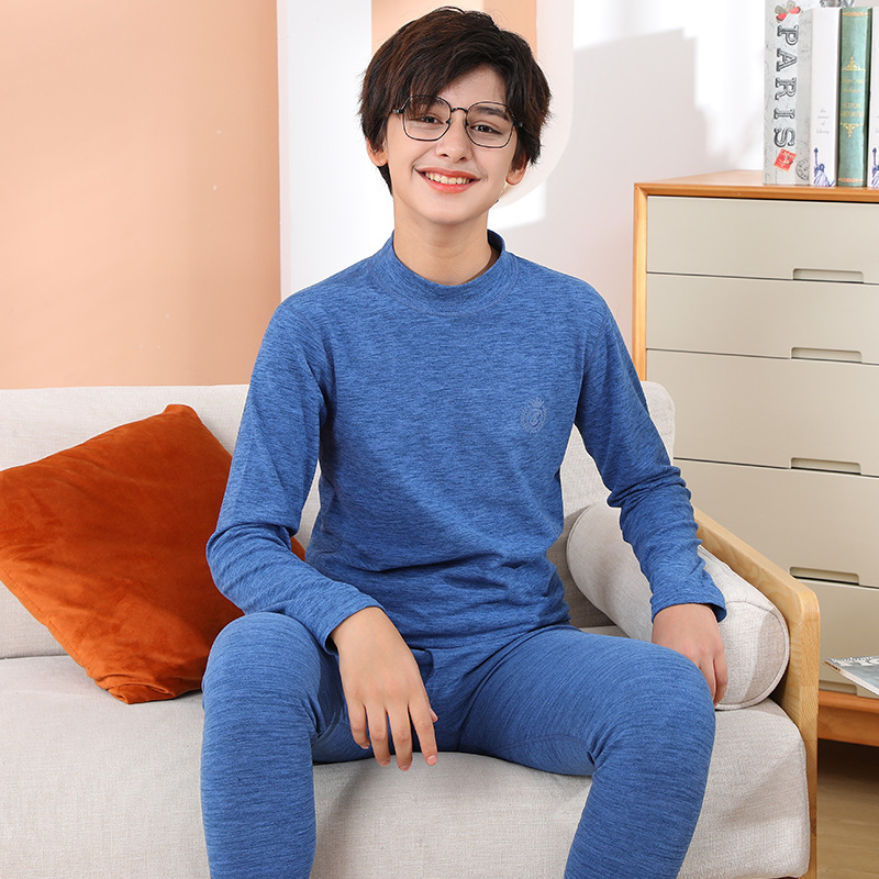 新款青少年半高领内衣套装男女童秋衣秋裤中大童纯色家居服现货