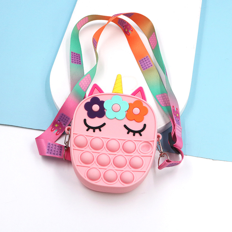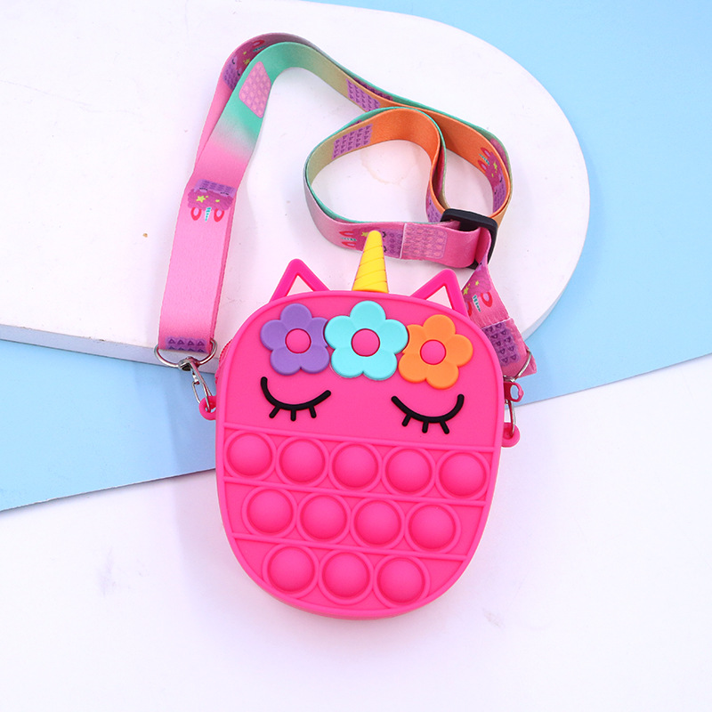 新款硅胶零钱包卡通硅胶包包斜挎独角兽包包减压泡泡乐包