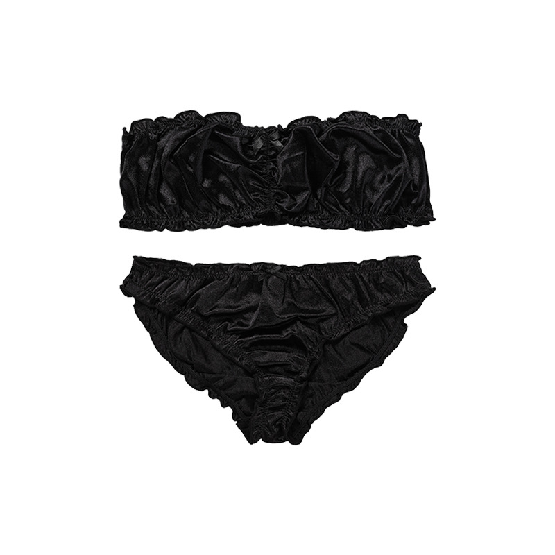 性感色丁无钢圈文胸内衣套装女超弹力缎面上托情趣蝴蝶结抹胸套装