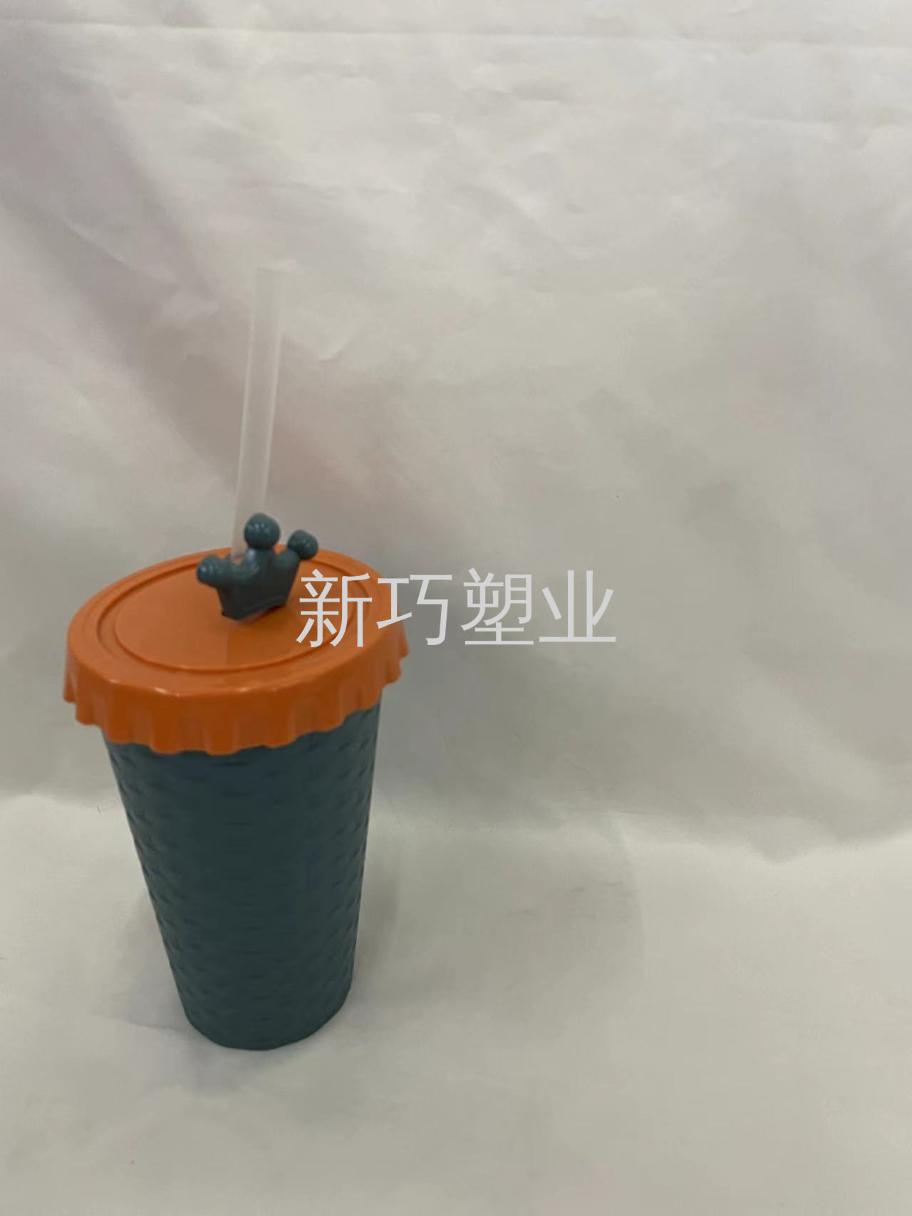 批发吸管杯学生水杯450ml广告礼品杯双层塑料杯饮料杯外贸水杯