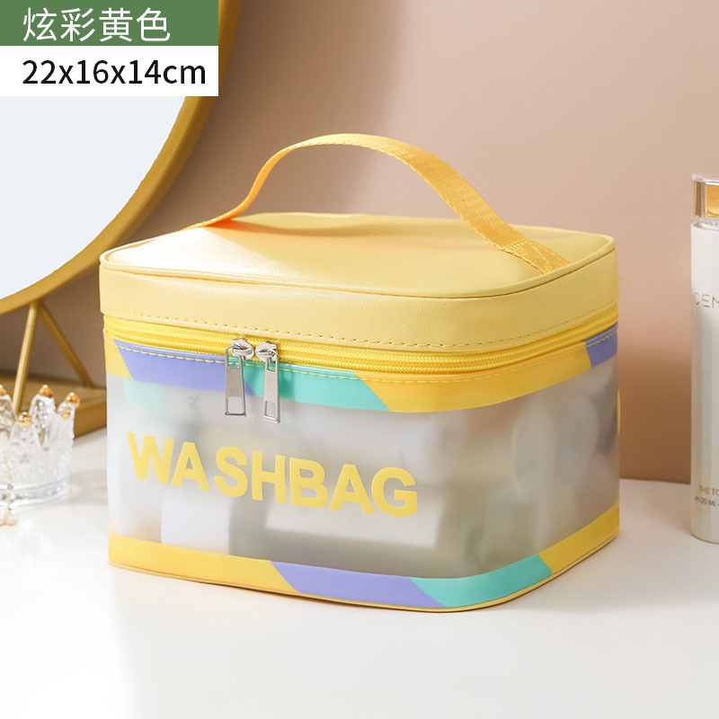 方形炫彩PVC旅行化妆包大容量便携手提洗漱包化妆品洗漱品收纳包