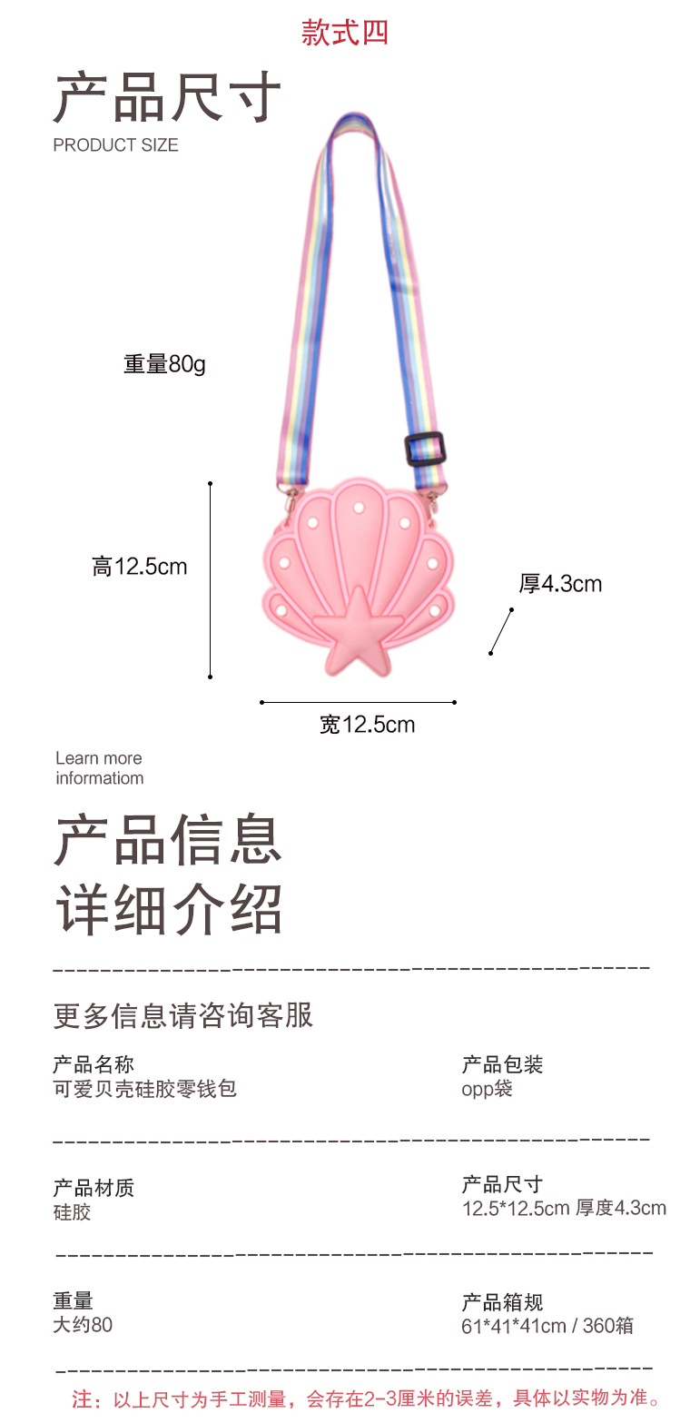 2023跨境新款贝壳硅胶包包 儿童简约时尚零钱包单肩斜跨包