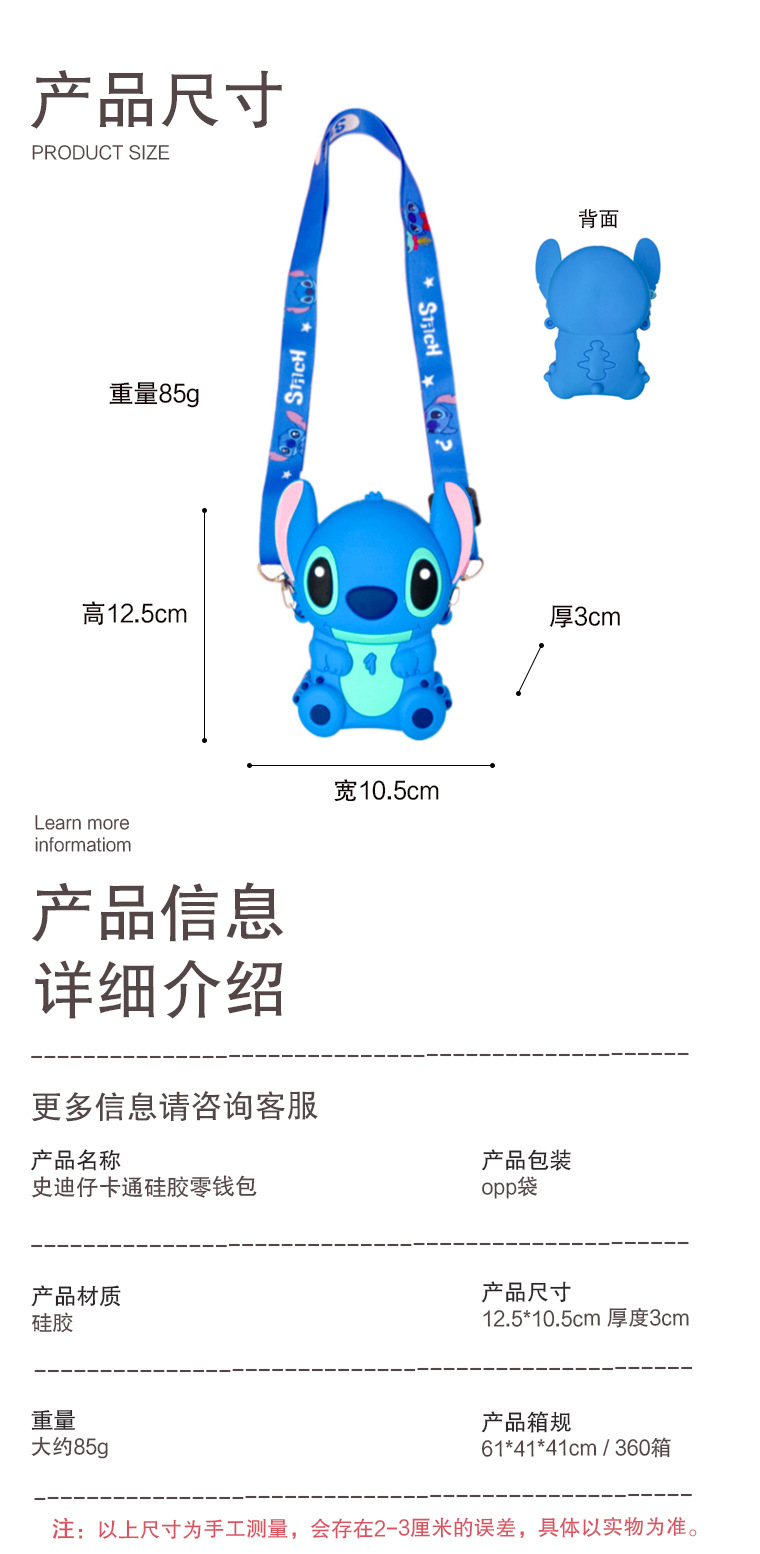 跨境 卡通史迪仔硅胶包包 外星狗儿童零钱包时尚百搭斜跨包