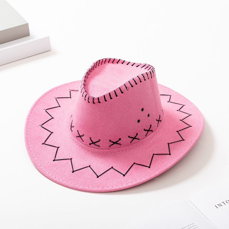 西部牛仔草帽骑士帽子男女士夏天遮阳帽 休闲鸡皮绒牛仔帽 批发