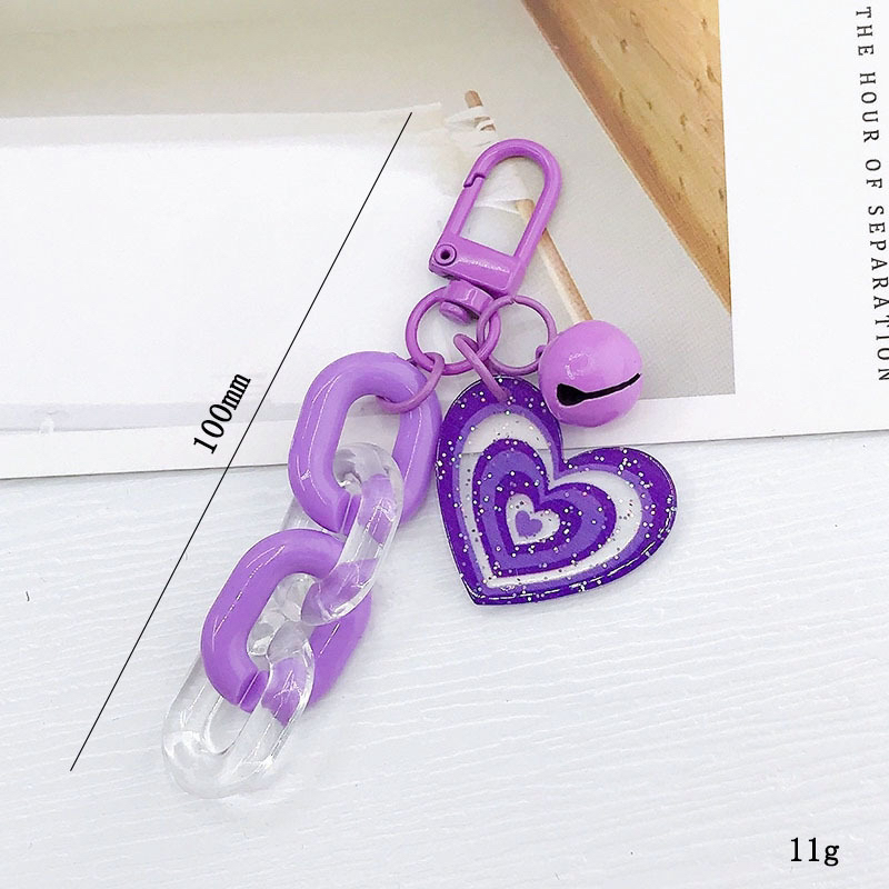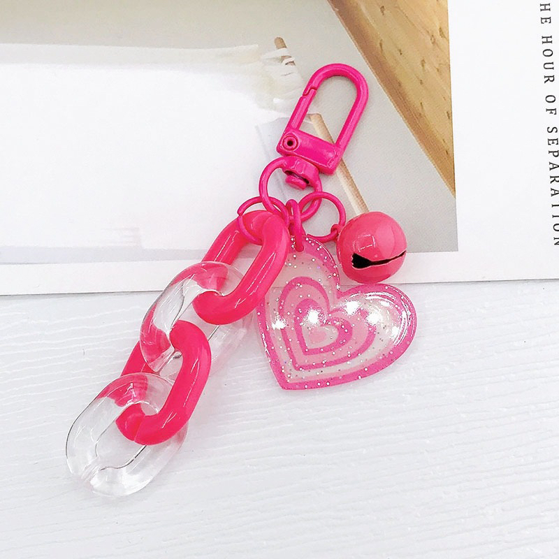 新款爱心铃铛汽车钥匙扣挂件小清新彩色亚克力链情侣包包挂件
