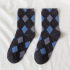 秋季新品菱形女士中筒休闲风棉质袜子现货 透气自由条纹几何袜子