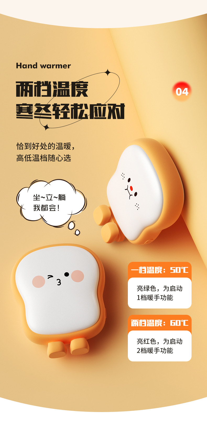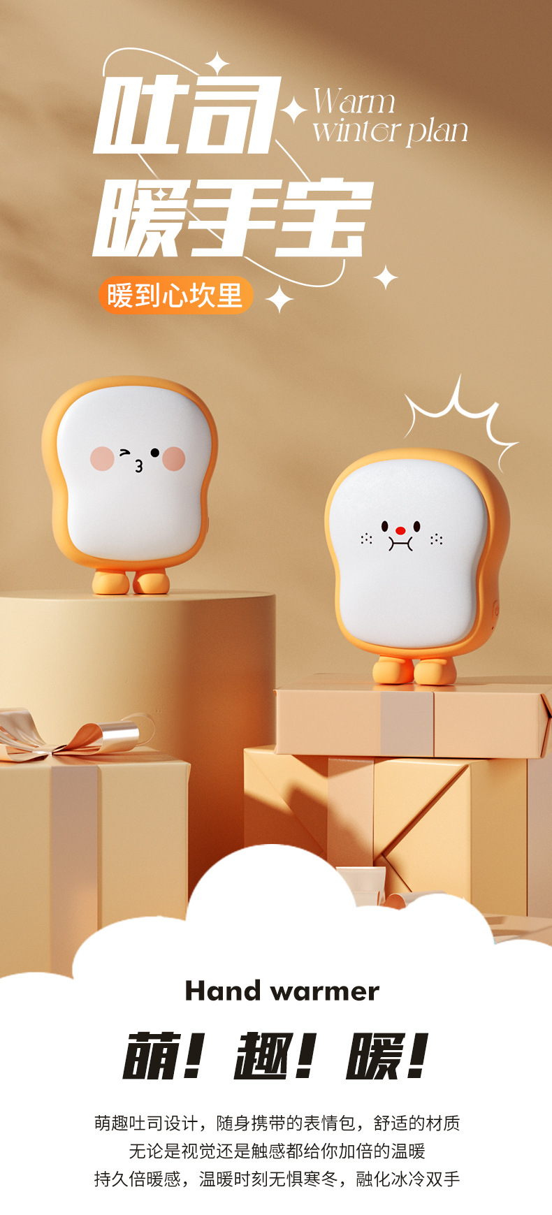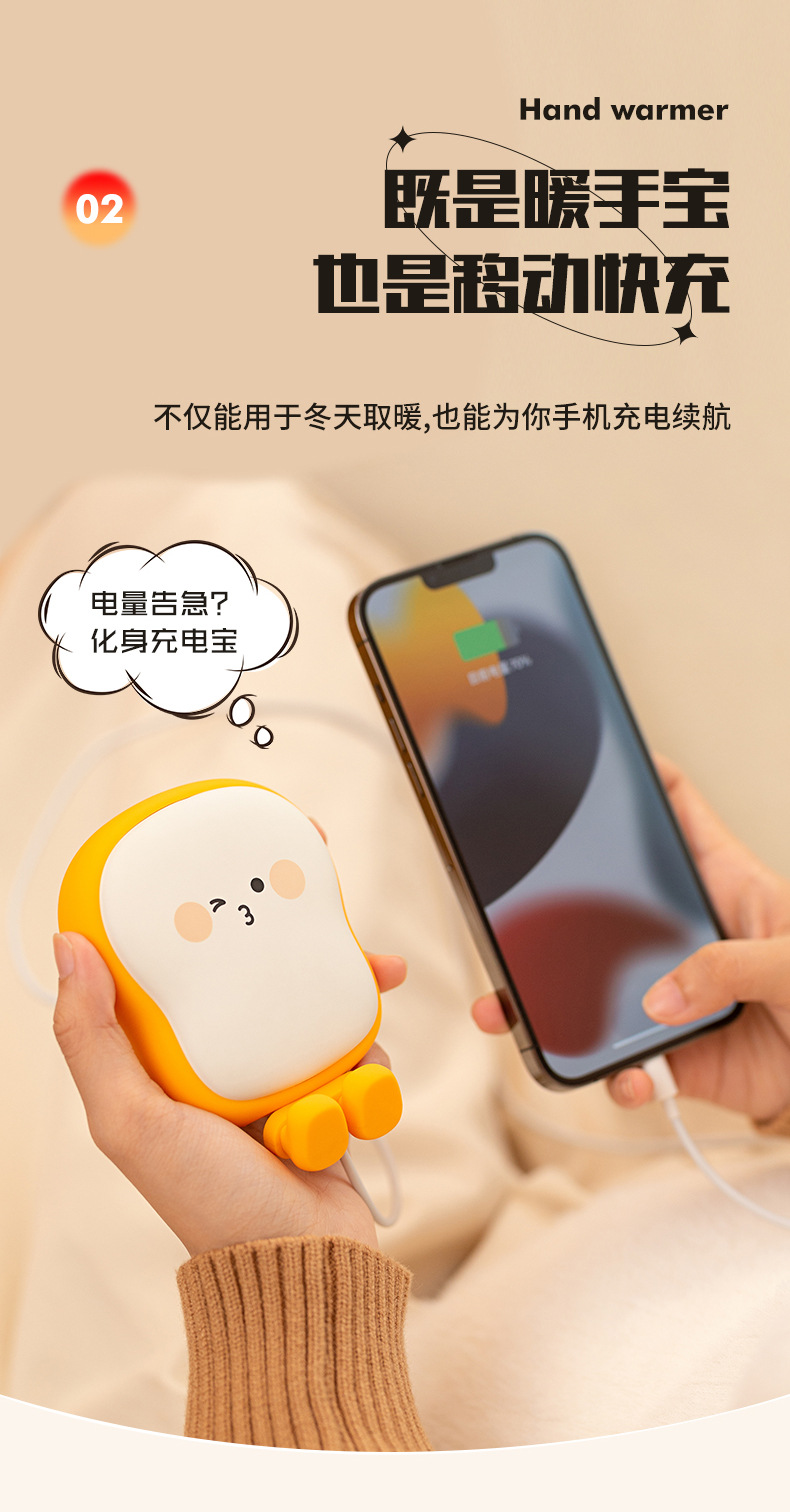 新款吐司暖手宝USB 充电宝二合一随身便携迷你暖手宝创意生日礼品