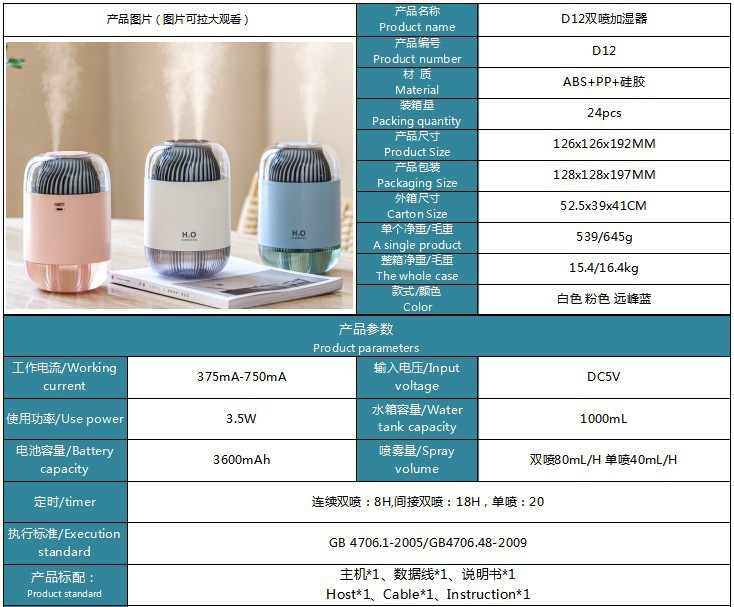 新款双喷智能静音大容量加湿器usb卧室补水加湿电器