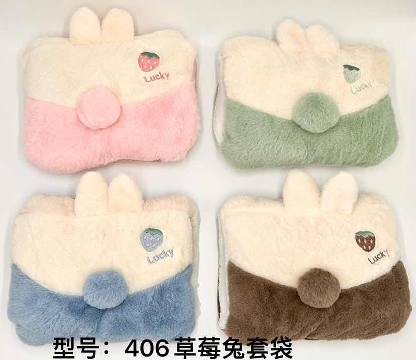 厂家直销新款套枕可爱草莓兔充电热水袋外贸圆头充电