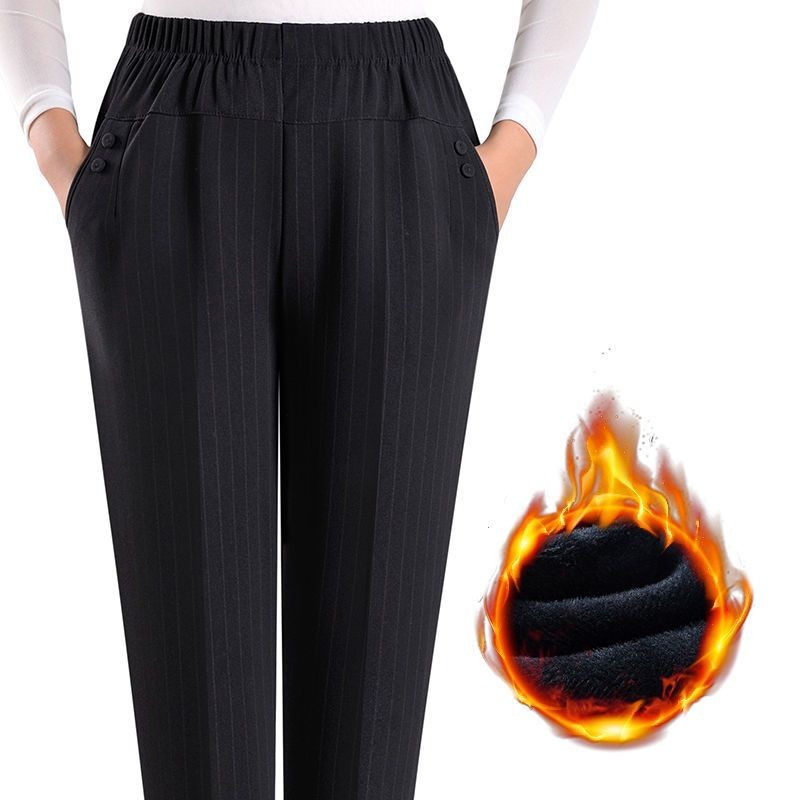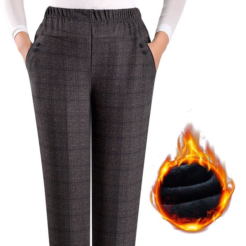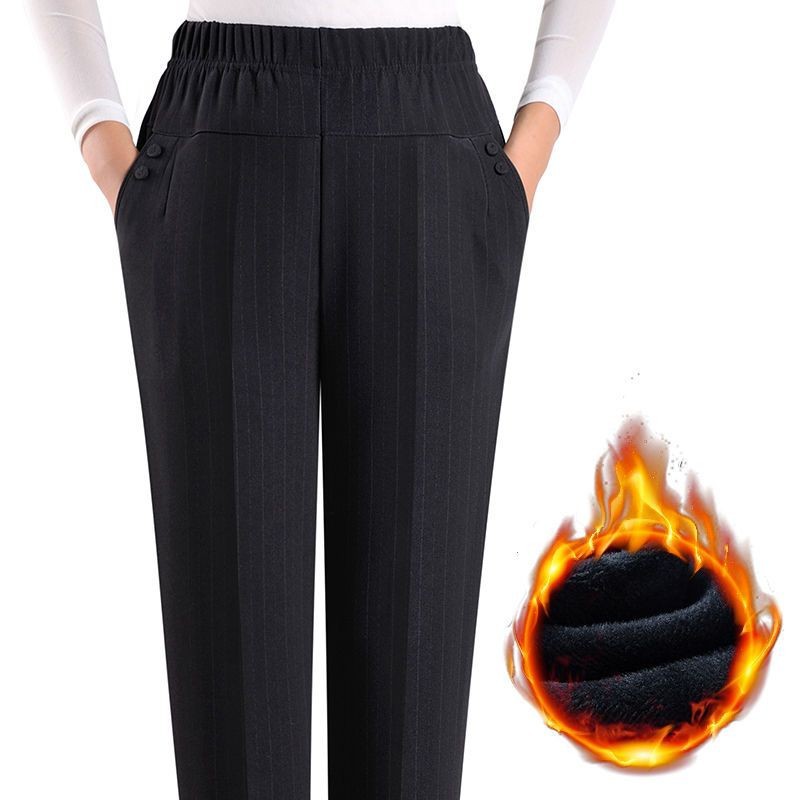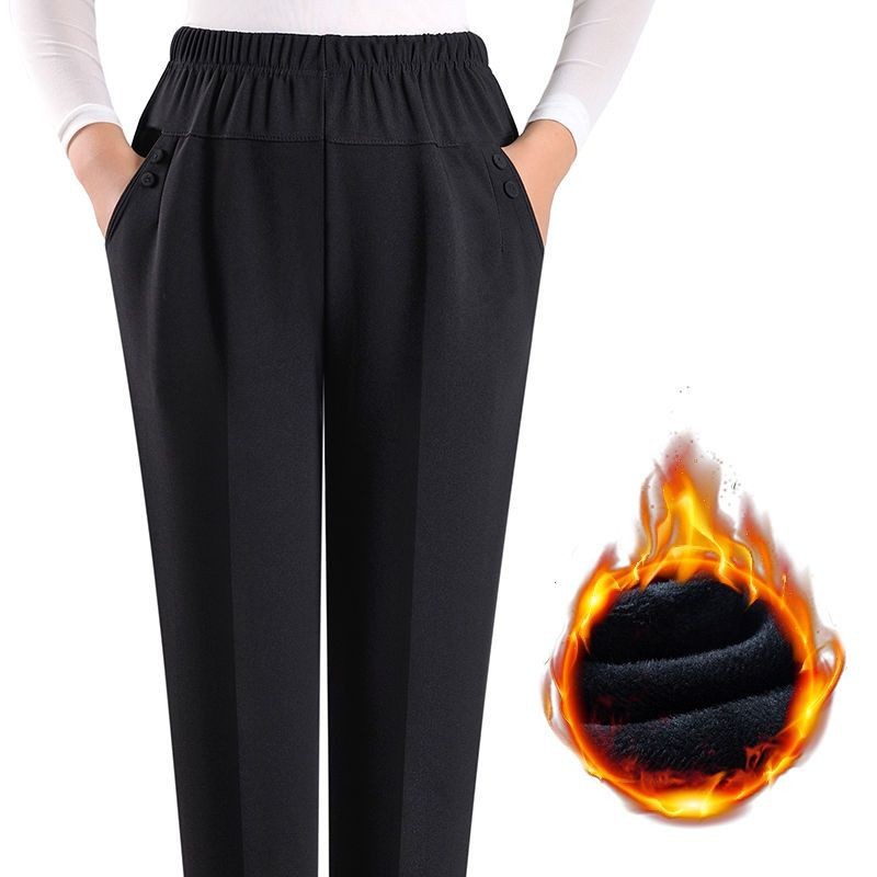 中老年人裤子秋冬季加绒厚高腰羊羔绒妈妈保暖棉裤女外穿宽松奶奶