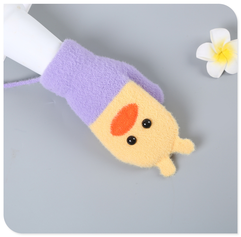 新款儿童连指手套男女童可爱小鸭小孩宝宝加绒保暖挂脖挂绳现货批