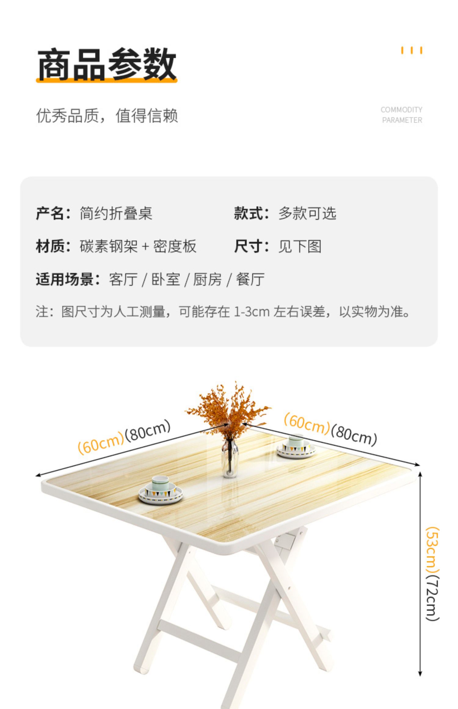 折叠桌子饭桌餐桌家用小方桌宿舍寝室桌子小型简易摆摊桌便携桌