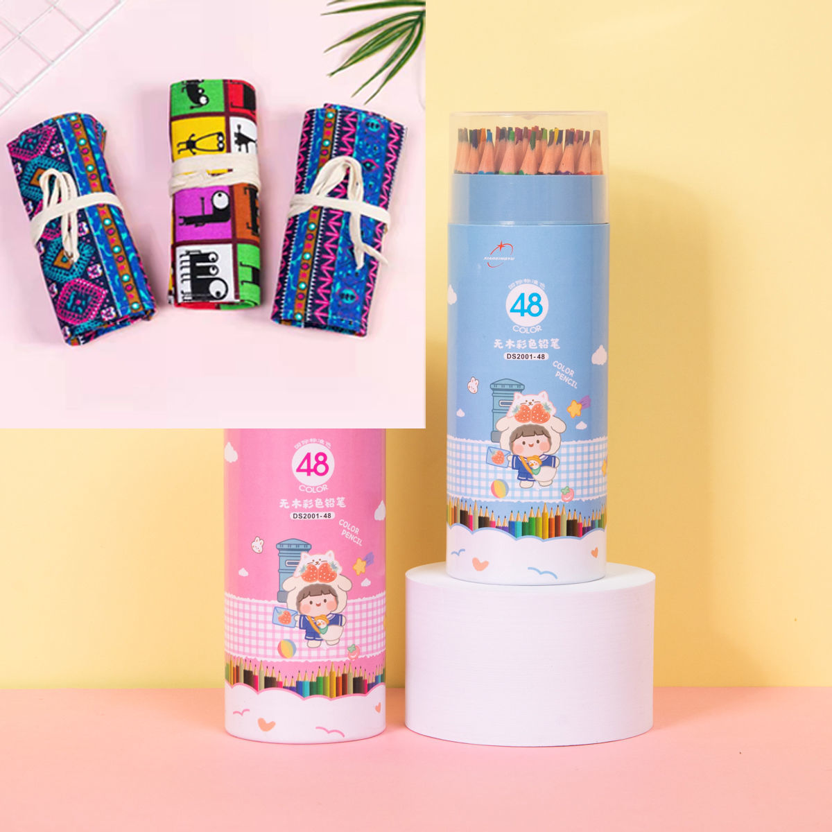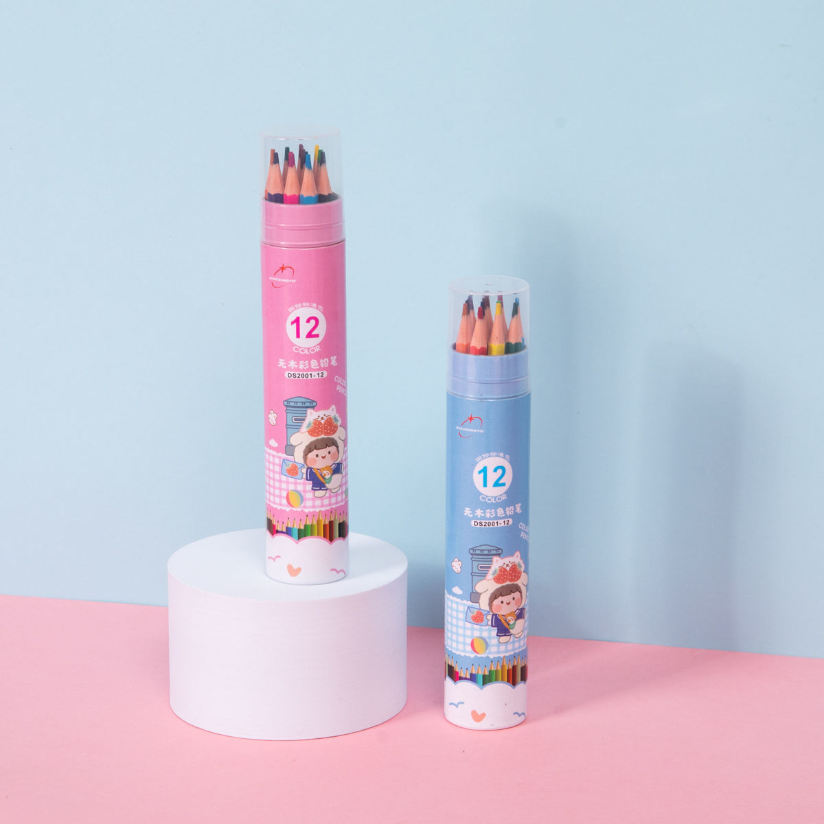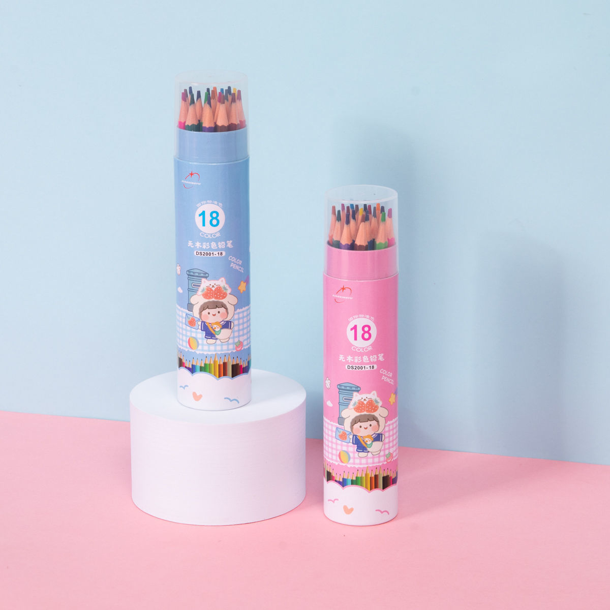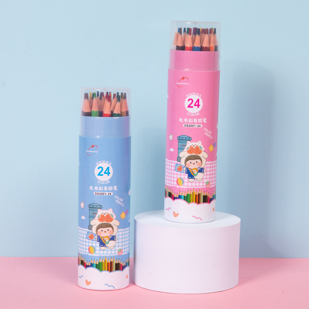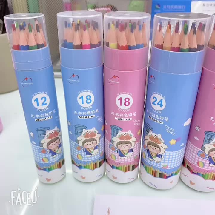 彩色铅笔小学生桶装画笔套装彩铅手绘12-18-24-36-48色彩铅笔