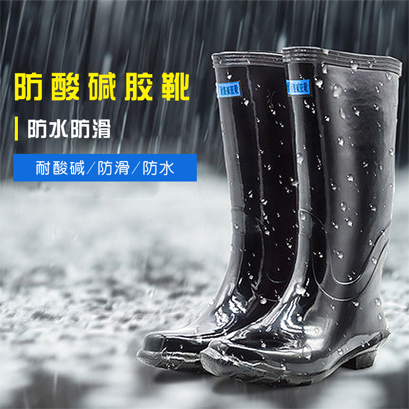 海源特大码长筒雨鞋高筒套鞋踏雪耐酸碱盐耐磨防滑男高帮雨靴水靴
