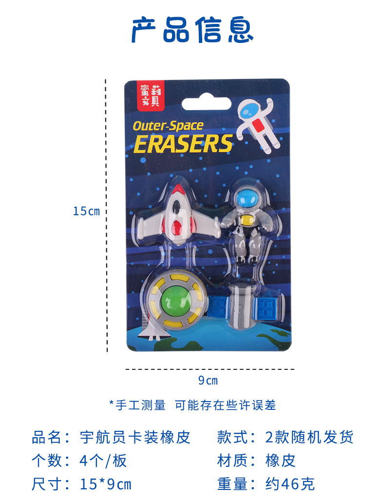 宇航员儿童橡皮擦文具套装卡通创意文具太空橡皮擦小学生奖品赠送