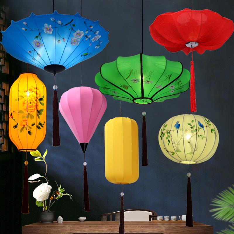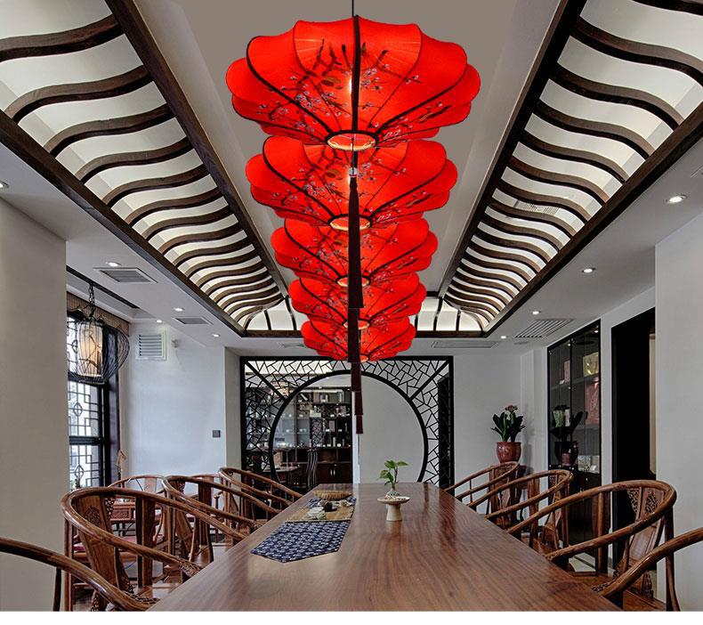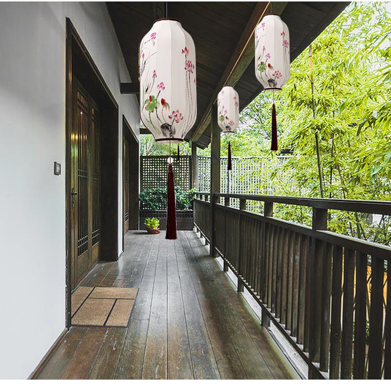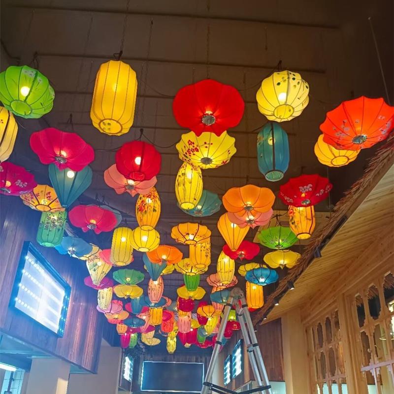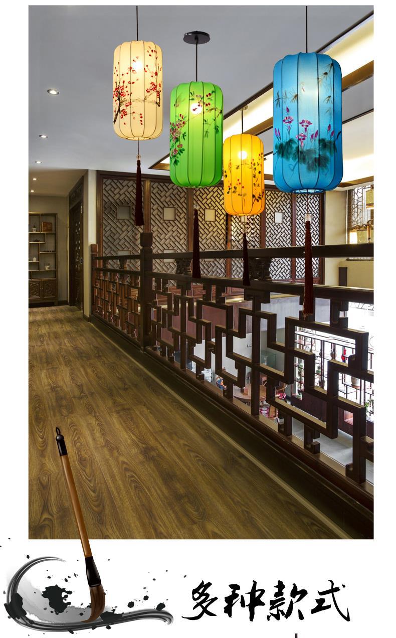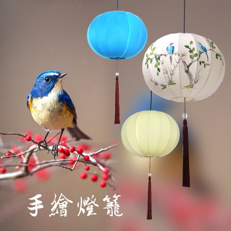 外贸专供五一新中式吊灯布艺手绘灯笼中国风商场店铺走廊过道灯饰